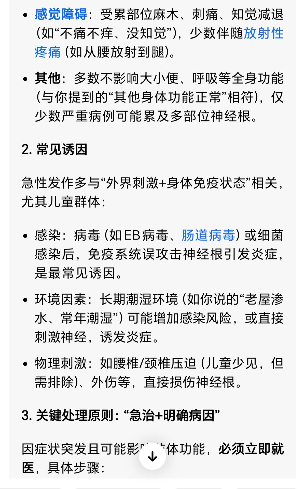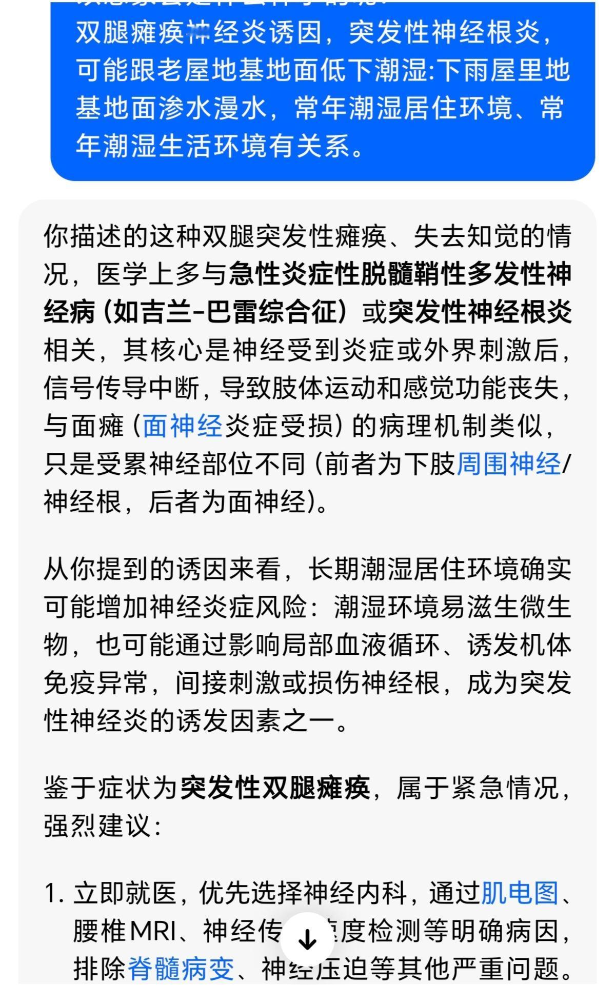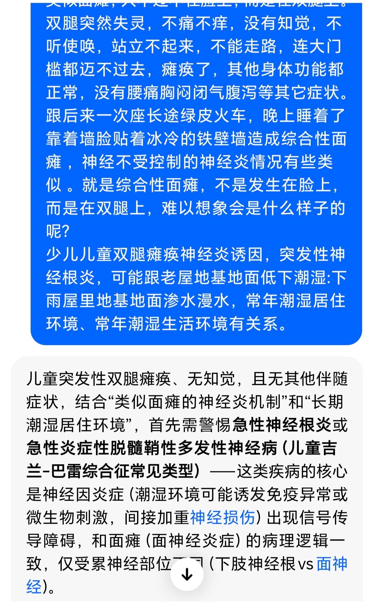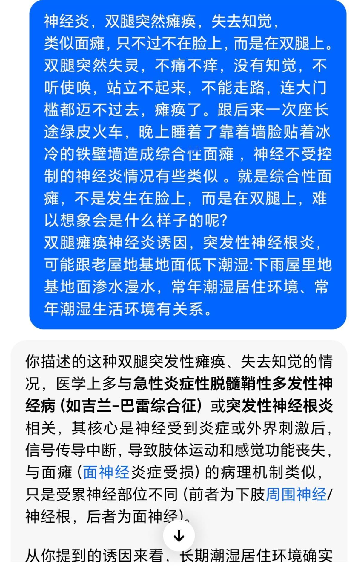 感谢同济医院教授拯救了我的双腿免于瘫痪 :人生第一次结缘于同济医院是20多年前2000年5-8月,我周周往返跑新洲和医院, 是跑遍了同济医院神经科所有医生,得了一种新洲首见的罕见病:双腿突然失灵,不痛不痒,没有知觉,不听使唤,不能走路,大门槛都迈不过去,瘫痪了3-4个月,12岁1米6的大个全靠我父母轮流背去医院治疗,医院教授竭尽全力把我双腿拯救回来,导致我没有瘫痪,非常感谢医生高超的治疗技术!因为家里穷本没有住院(因此学校学费里交的保险一分钱也报销不了),周周往返跑,把原计划做房子的钱都花光了。 当时我还为每位医治的教授写了人物传记尽管是一面之缘,可惜后来老家做房子搬东西,当年一手日记本找不了,人生憾事!如同噩梦般,濒临瘫痪抢救回来说是突发性神经根炎,跟老屋地基地面低下潮湿:下雨屋里地基地面渗水漫水,常年潮湿生活环境有关系。 跟后来一次座长途绿皮火车,晚上睡着了靠着墙脸贴着冰冷的铁壁墙造成面瘫 神经不受控制的神经炎情况有些类似 。 回望过去患病,如梦魇一般惊心动魄!感谢帮助我的父母兄弟,感谢帮助我的所有的亲人朋友老师医生同学们,是你们的帮助和陪伴,让我度过的双腿瘫痪的危机,让我人生终将迎来美好!