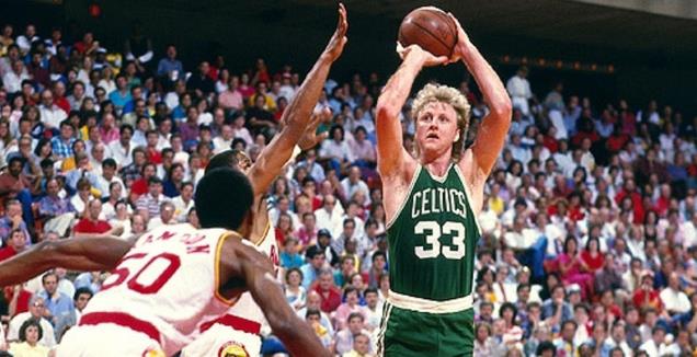 这不仅得益于他出色的投射,也因为他过于狡猾的传球,让防守人不得不担心自己的身后,伯德会捕捉到任何一点动作的迟疑,然后完成瞬间的投篮/出球。
