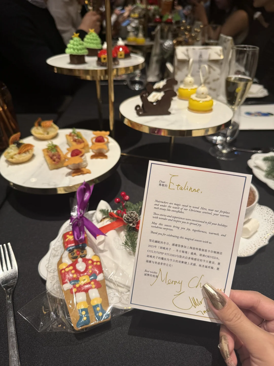 ▪️在上海波特曼丽思卡尔顿「胡桃夹子·冬日秘境」下午茶发布上,我感受到了艺术与舌尖的碰撞。甜点师把雪片与浆果捏成艺术品,轻轻落在PIP STUDIO的骨瓷盘中。指尖划过榛果脆壳,勺底藏着覆盆子微酸的秘密——甜从来不是唯一主张,就像节日不只有一种模样。 - ▪️空气里飘着雪松与暖姜的气息,CULTI把冬天酿成一种透明的酒。皮肤记得ORVEDA触碰时的温度,连阳光经过时都放缓了脚步。 - ▪️在圣诞季最精巧的浪漫,是让平常午后变成会发光的仪式。