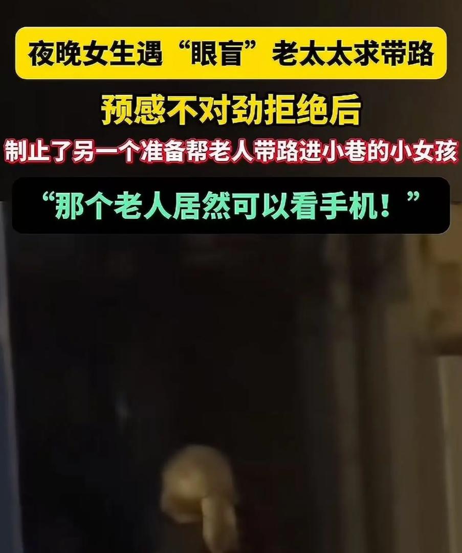 长沙盲人老太被当成坏人痛哭,女孩被骂“冷血”:这事儿,到底谁病了? 看到那个拿着一级残疾证、哭得撕心裂肺的盲人老太太,说实话,我也心疼。 那种被人误解成“人贩子”的委屈,隔着屏幕都能感觉到。 但转过头看看那个被骂“想多了”的女孩,我却骂不出口。 甚至我觉得,她的做法,是当下环境里最无奈的“标准答案”。 我们来换位思考: 如果你是一个单身女孩,在复杂的街头,突然被陌生人纠缠求助,你的第一反应是什么? 是“助人为乐”,还是“赶紧跑”? 我们从小被教育要善良,但长大的过程却无数次告诉我们要保命。 这社会太复杂了。我们听过太多“孕妇骗女孩回家”、“老人碰瓷”的新闻。 一旦那是陷阱,女孩付出的可能是一辈子的代价; 而如果只是误会,大不了就是一个道歉。 这道题,做错了是没良心,做对了可能没命。 你说,她敢赌吗? 老太太是无辜的,女孩是警惕的。 错的不是她们,是这个把“信任”磨得粉碎的世道。 最后,想把麦克风交给在座的各位: 如果是你,或者你的女儿,在大街上遇到这种情况,你会选择停下来帮忙,还是转身离开?