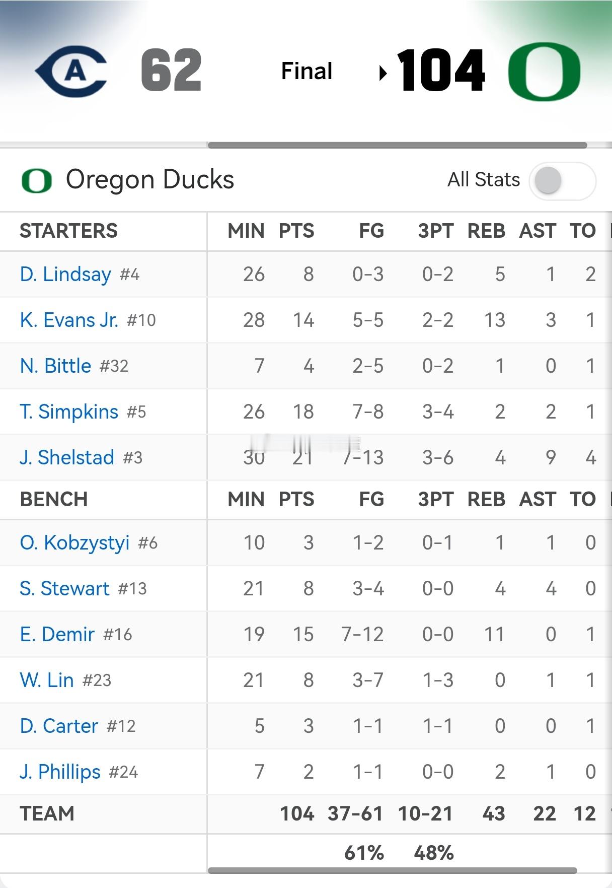 状态回暖!在刚刚结束的一场NCAA比赛,俄勒冈大学以104:62战胜对手,因为双方实力差距巨大,林葳替补出场得到了21分钟的时间,7投3中得到8分1助攻,这也是他NCAA目前的最高得分,希望这场比赛能给林葳带来吸引,找到更好的比赛感觉和状态!林葳海外中国球员闯美的篮球青年