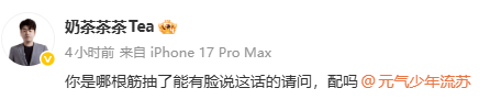 奶茶发文怒怼流苏,SK在其评论区发文:点赞