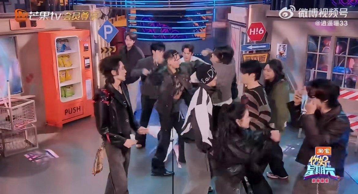 何炅 已经在努力劝架了 两拨人摩拳擦掌,何老师如临大敌钻出来开道,小小的身影劝完这个拦那个,幼稚园老师既视感拉满~你好星期六
