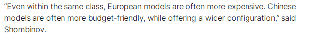 文章援引哈萨克斯坦一家汽车及配件贸易网站新车部门负责人亚博·肖姆比诺夫(YerbolShombinov)的话表示,“在哈萨克斯坦汽车市场上,中国汽车品牌与许多银行有合作,可以提供相当有竞争力的购车贷款政策”。此外,中国汽车的整车定价也很有优势。肖姆比诺夫表示,“即使在同一级别中,欧洲品牌通常也更贵。中国车型通常更经济实惠,同时提供更多配置让消费者选择。”