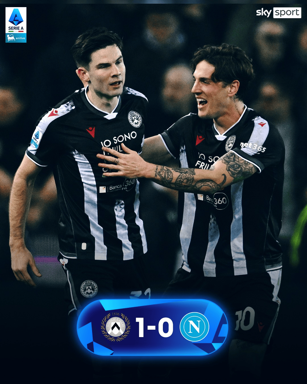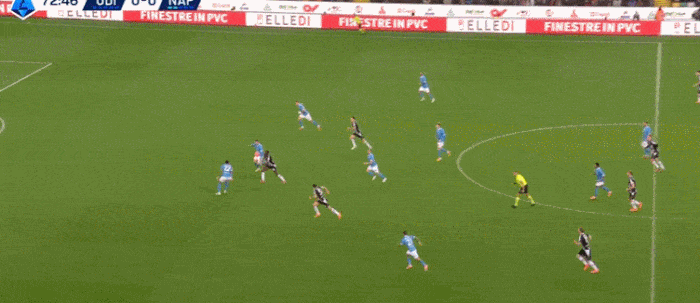 那不勒斯全场被乌迪内斯压制难以组织起进攻,且没能射正球门。伤停补时的最后时刻,卢卡的射门击中立柱,那不勒斯没能完成绝平。