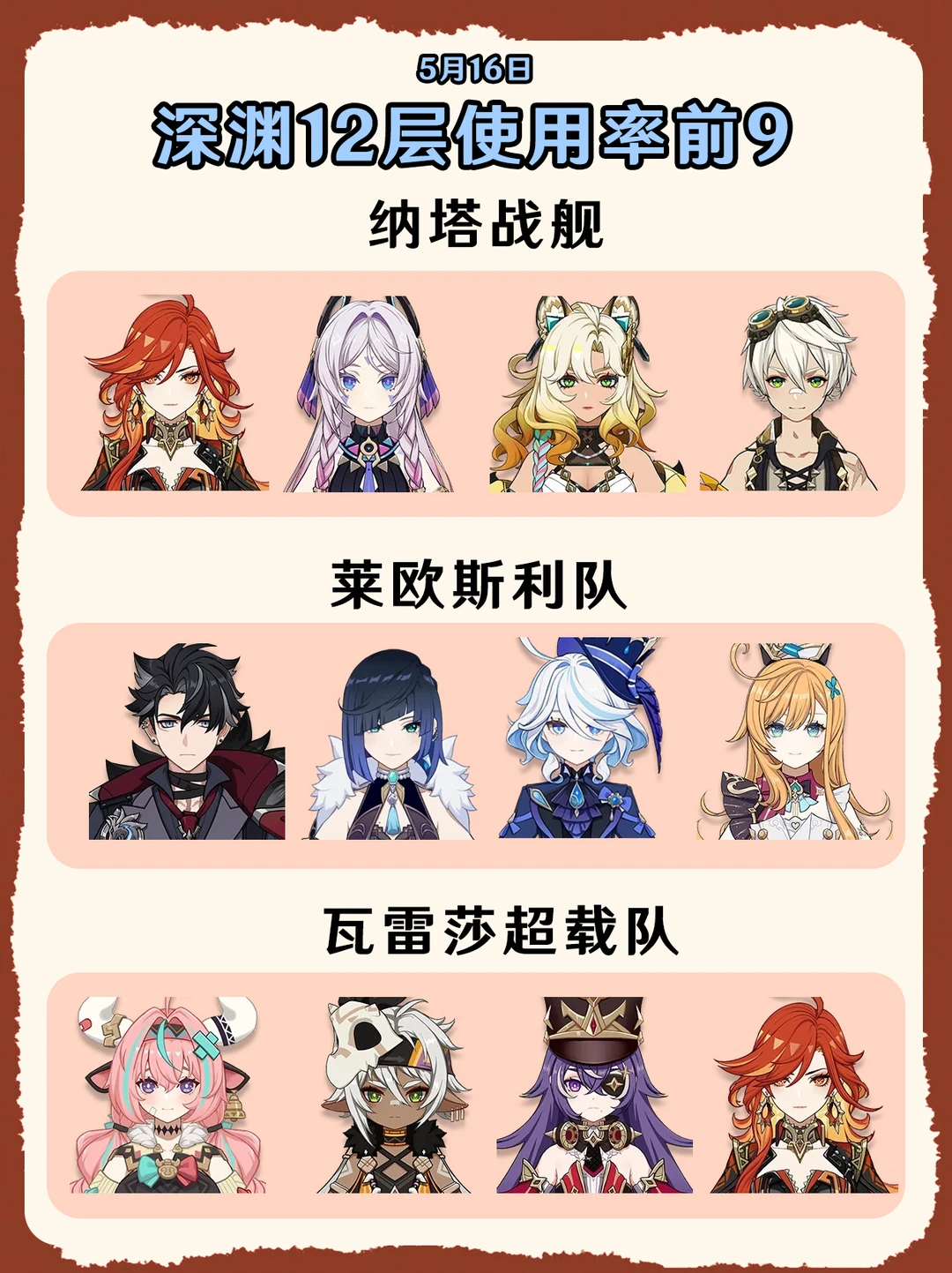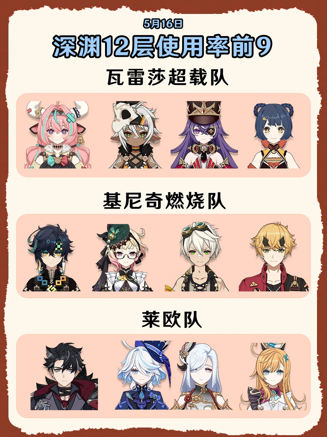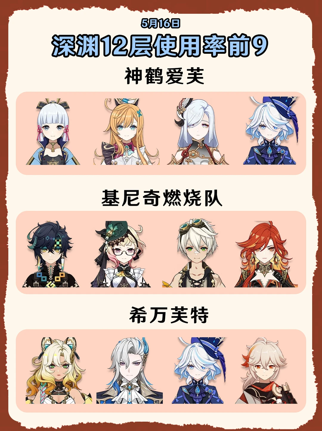 原神5.6深渊使用率排名前9的队伍!