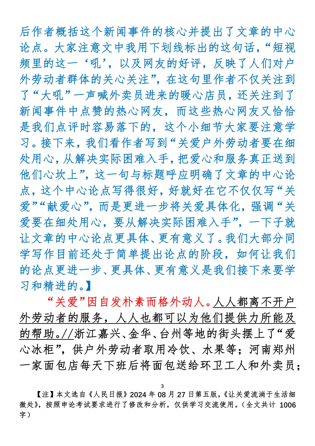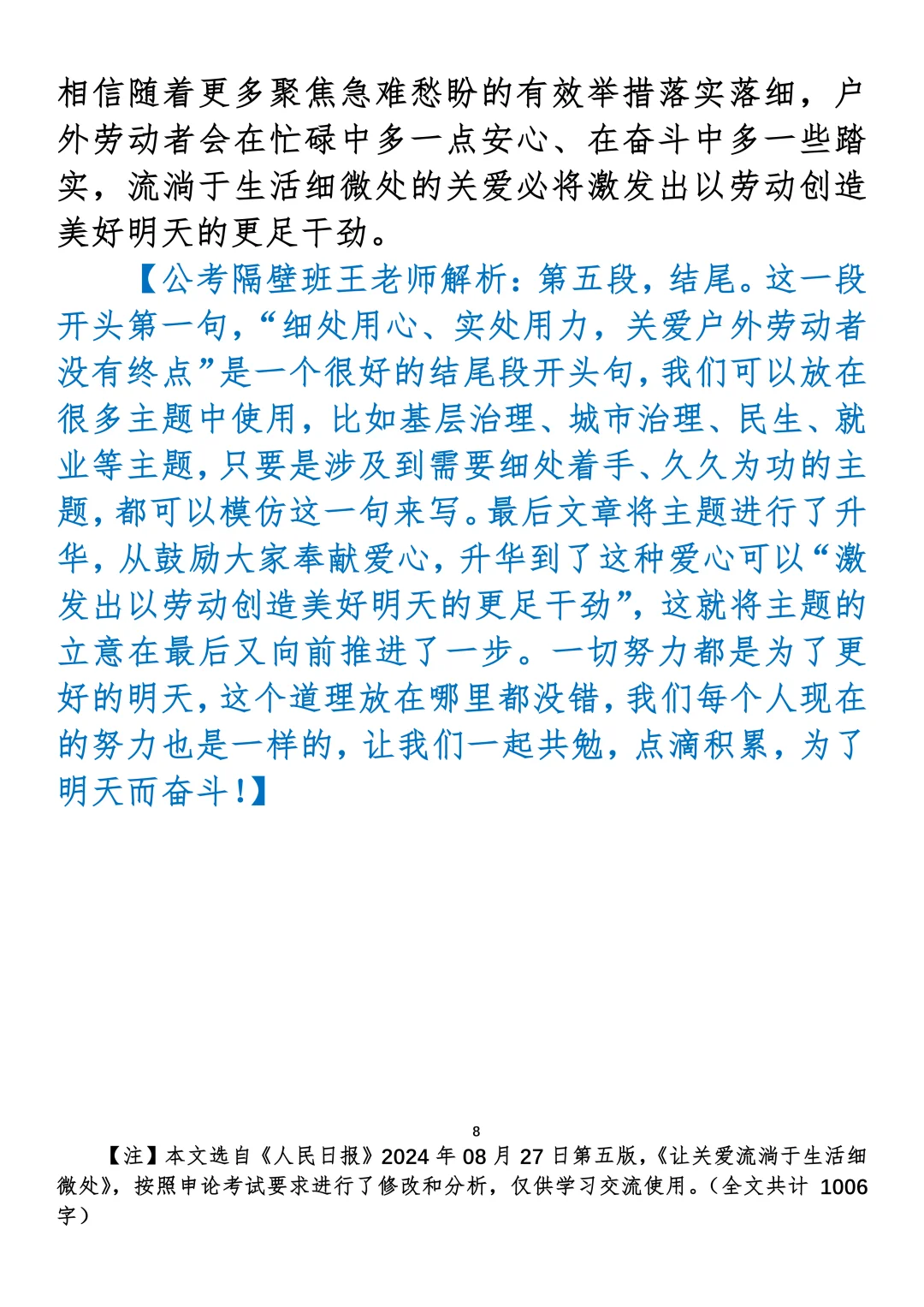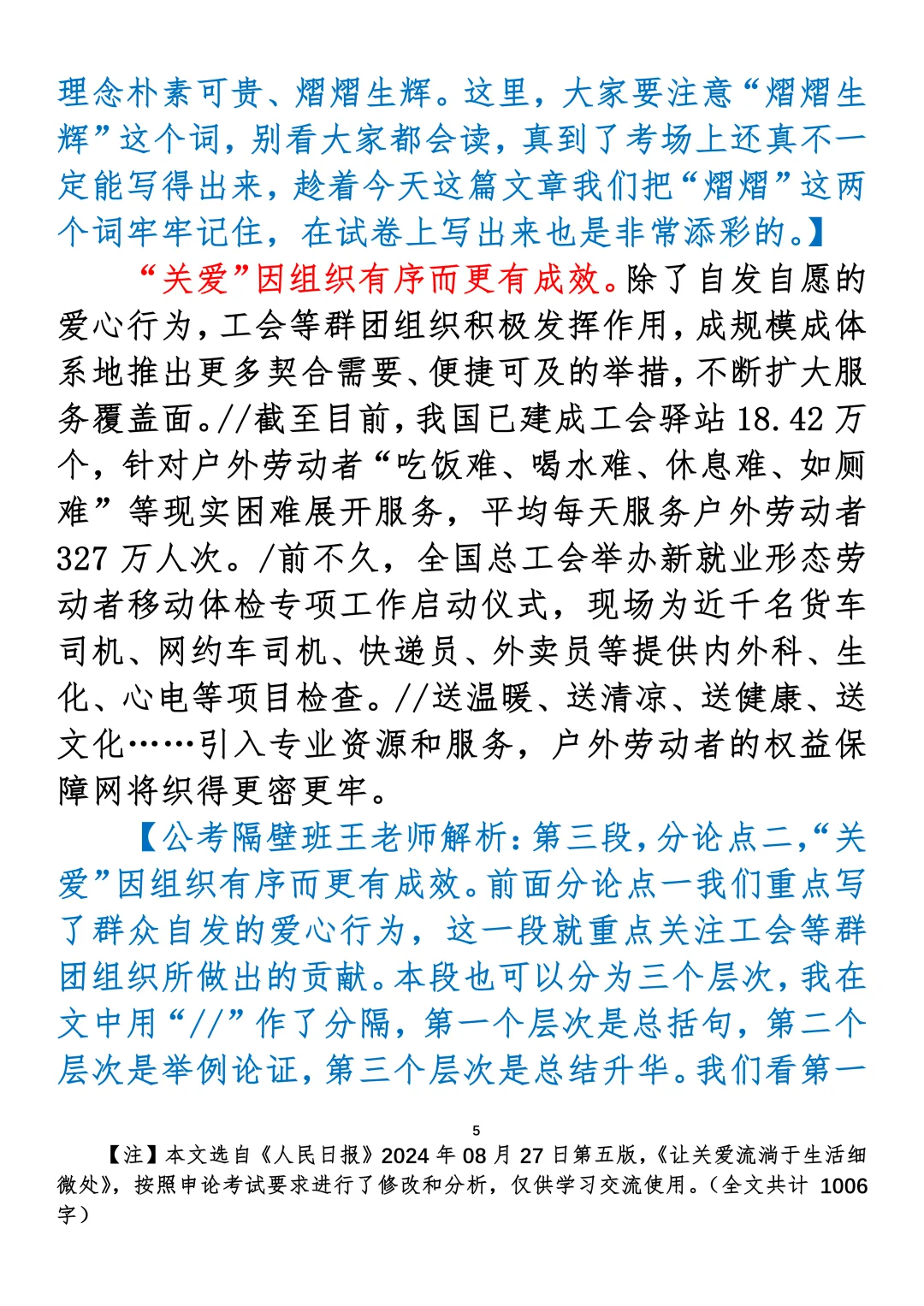 如何抄写:每日抄写文章发在“公考隔壁班王老师”账号,红色字是重点句和结构句,黑色字是正文,蓝色字是解析,大家抄写时不必抄蓝色字。建议先通读全文,做到心中有数再开始抄写,效果会更好。 关于文章:抄写文章来源于人民日报,但每篇文章我都根据申论考试要求进行了修改:一是重写或修改开头、结尾;二是统一段首句句式结构;三是调整段落字数,使文章结构更均衡;四是简化复杂长难句,使之更具可模仿性。每篇文章无论修改多少,都是基于申论考试要求,毫无对人民日报文章品评之意。(此处致敬人民日报)
