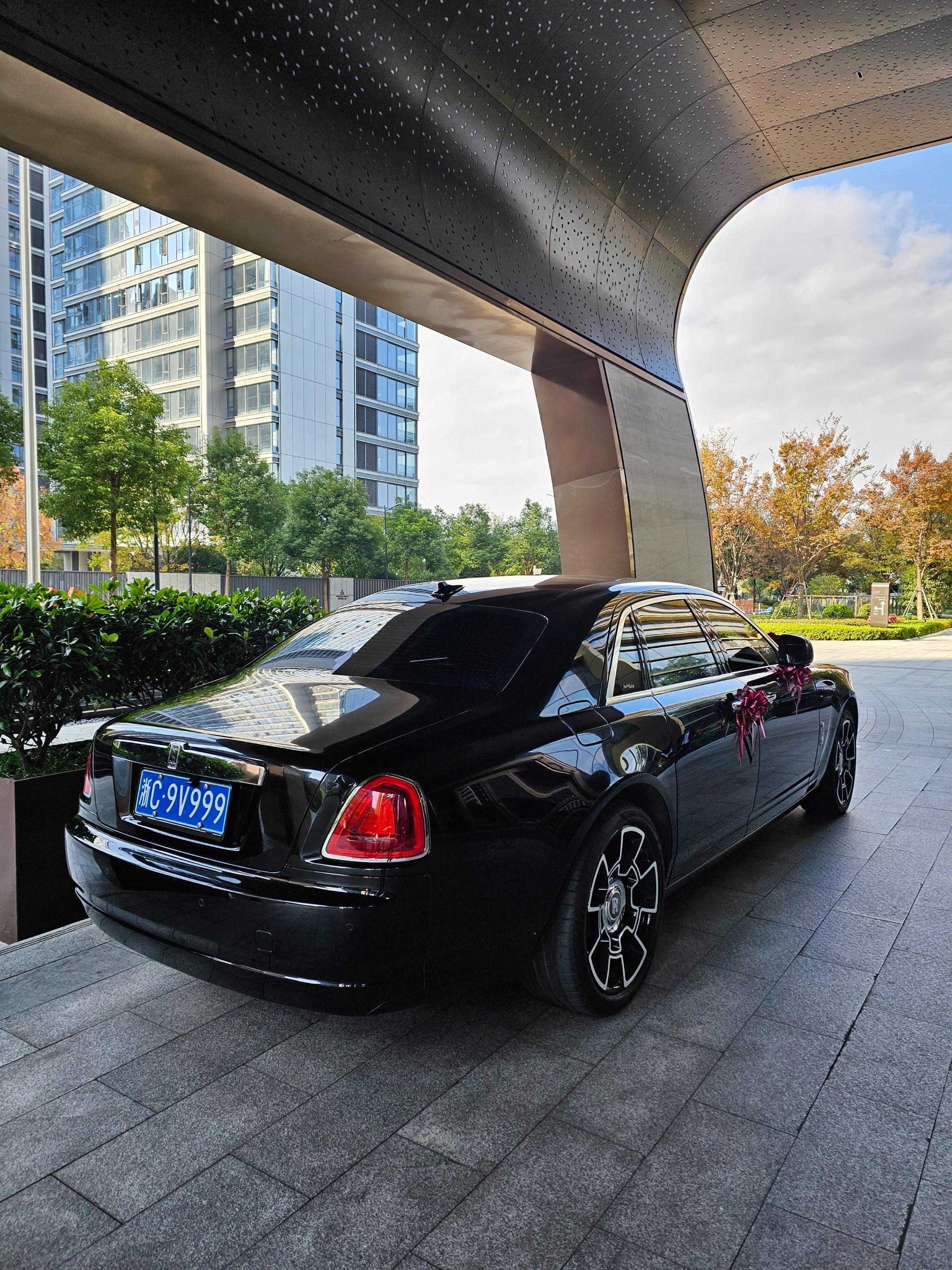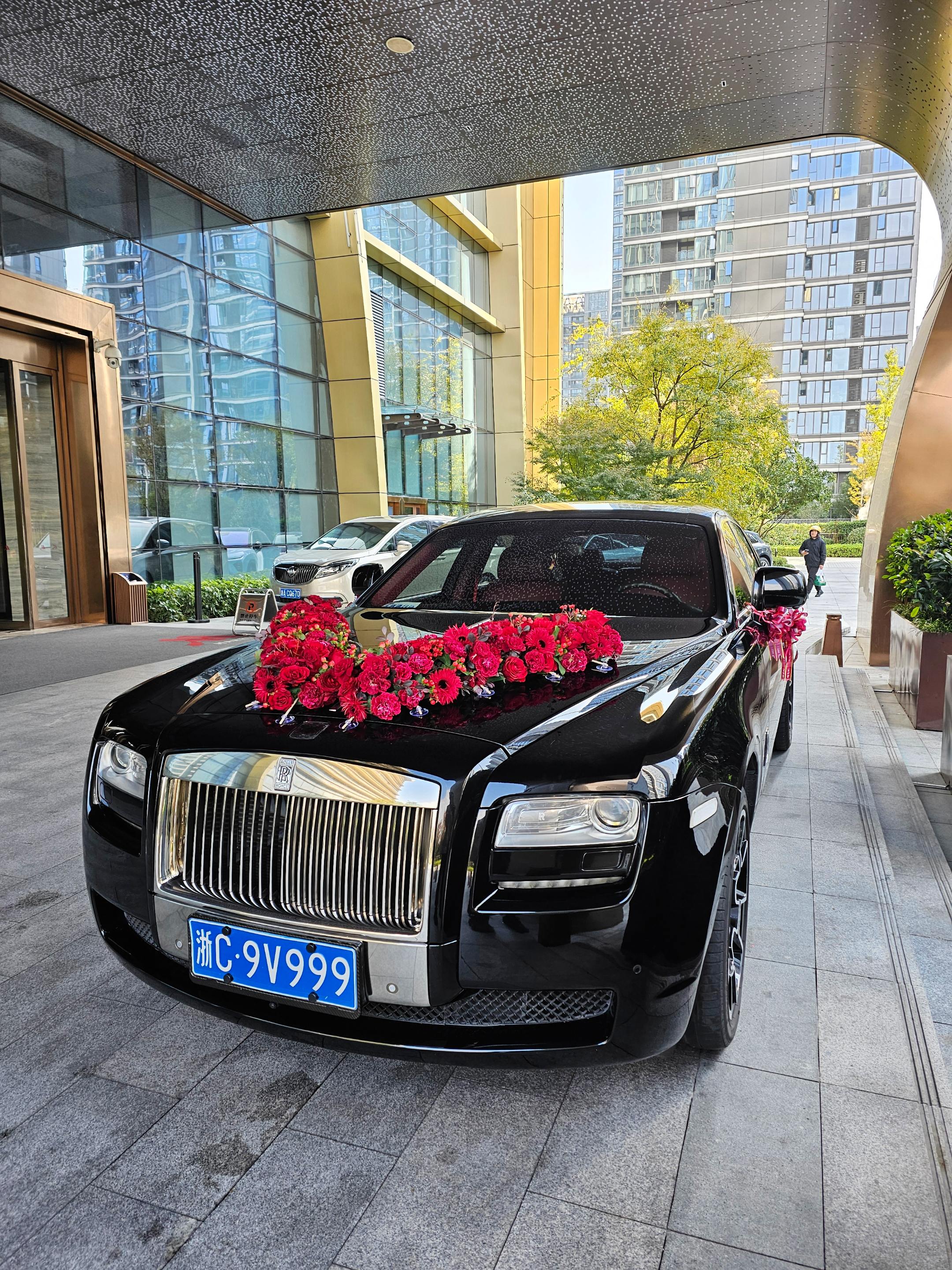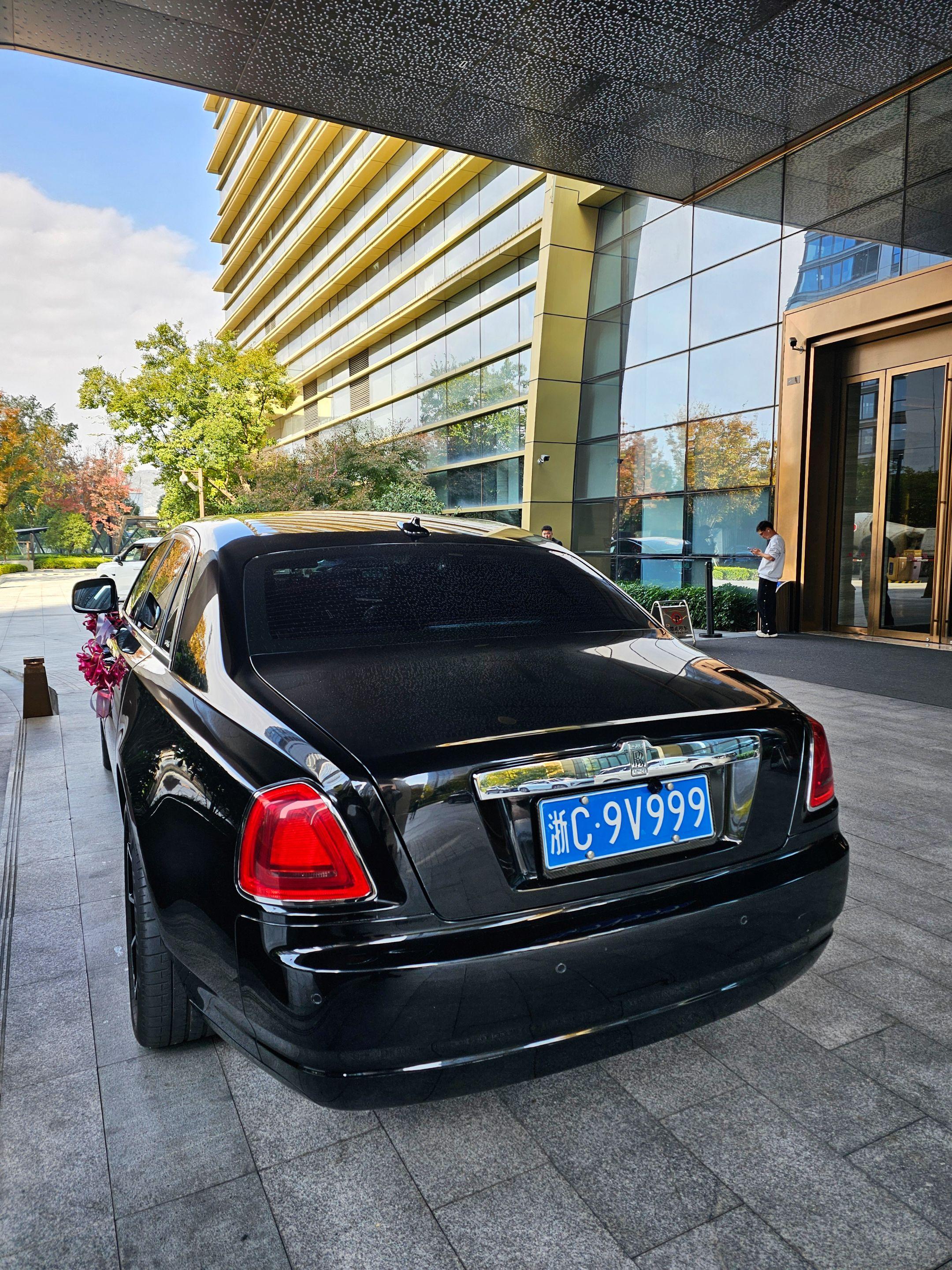在温州喜来登酒店门口偶遇婚车劳斯莱斯古思特,浙C9999车牌,气场强大霸气十足!