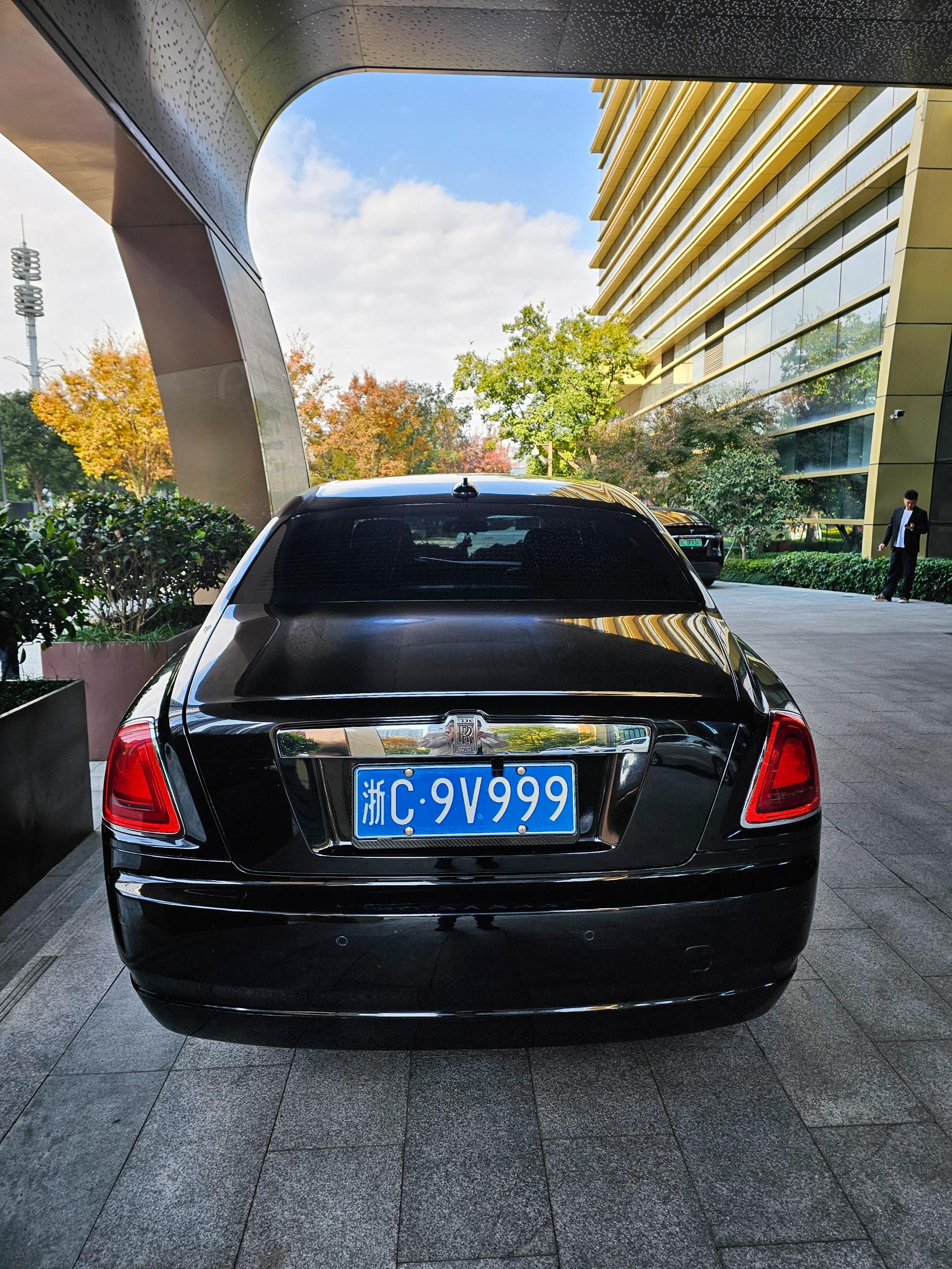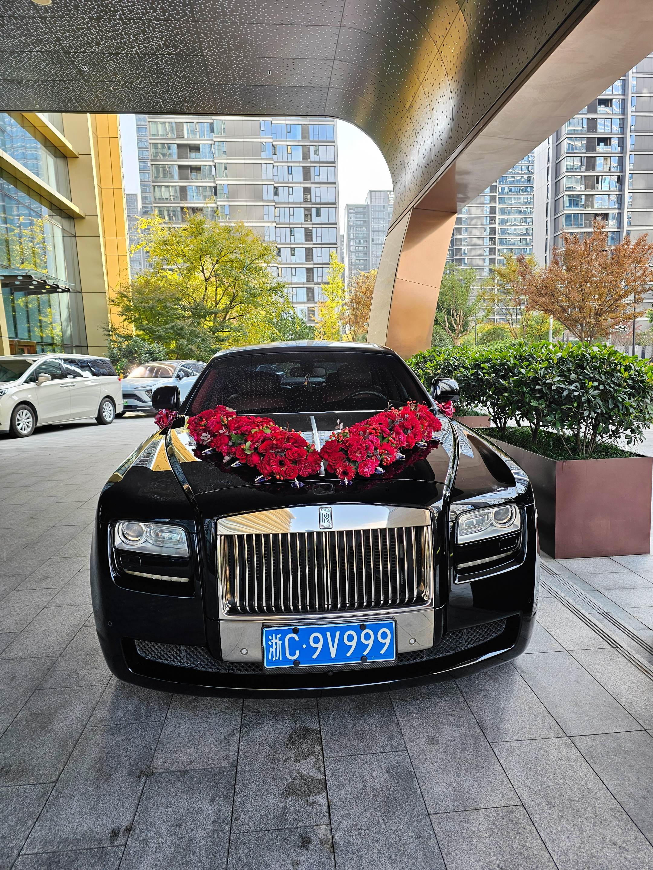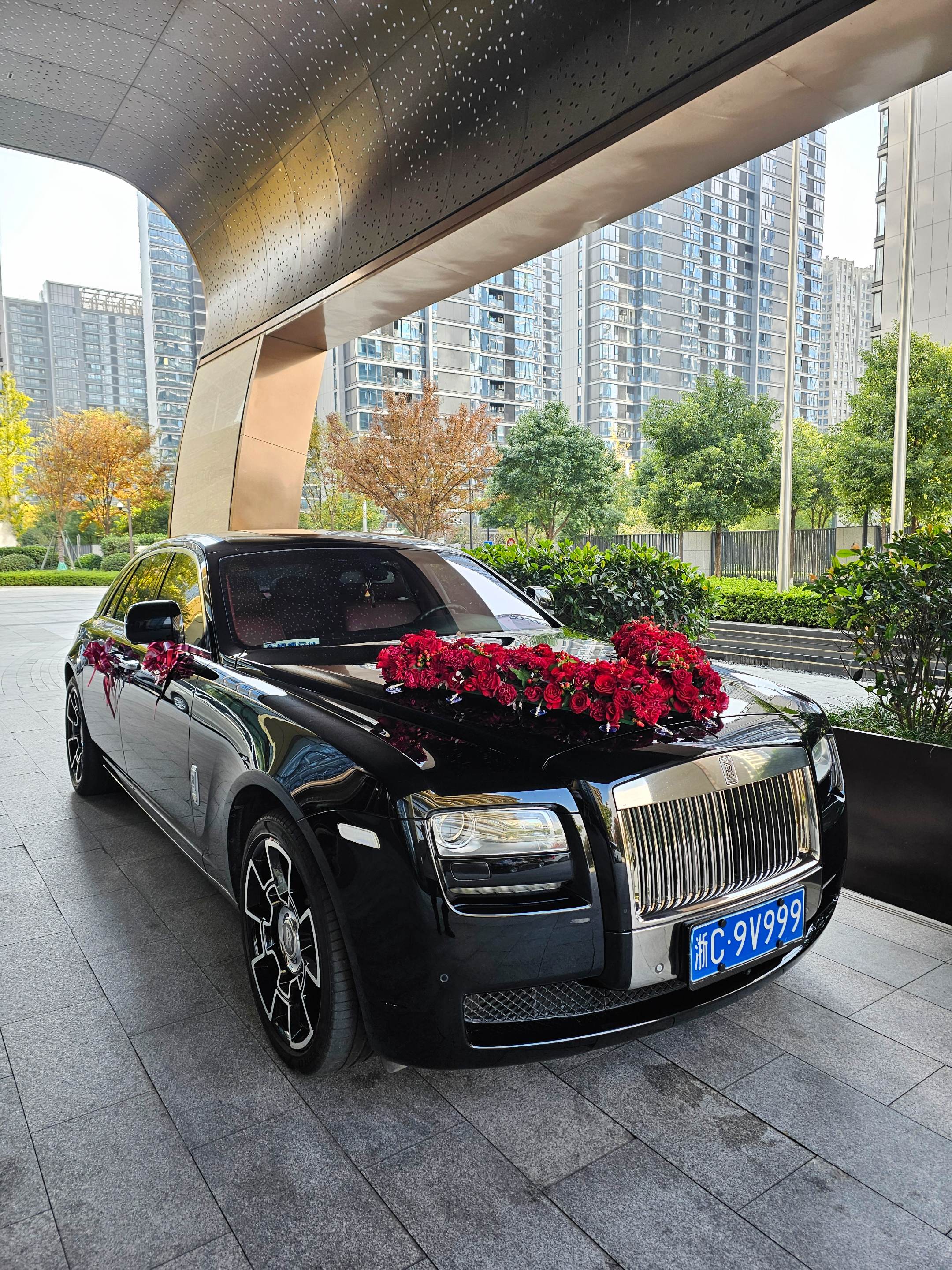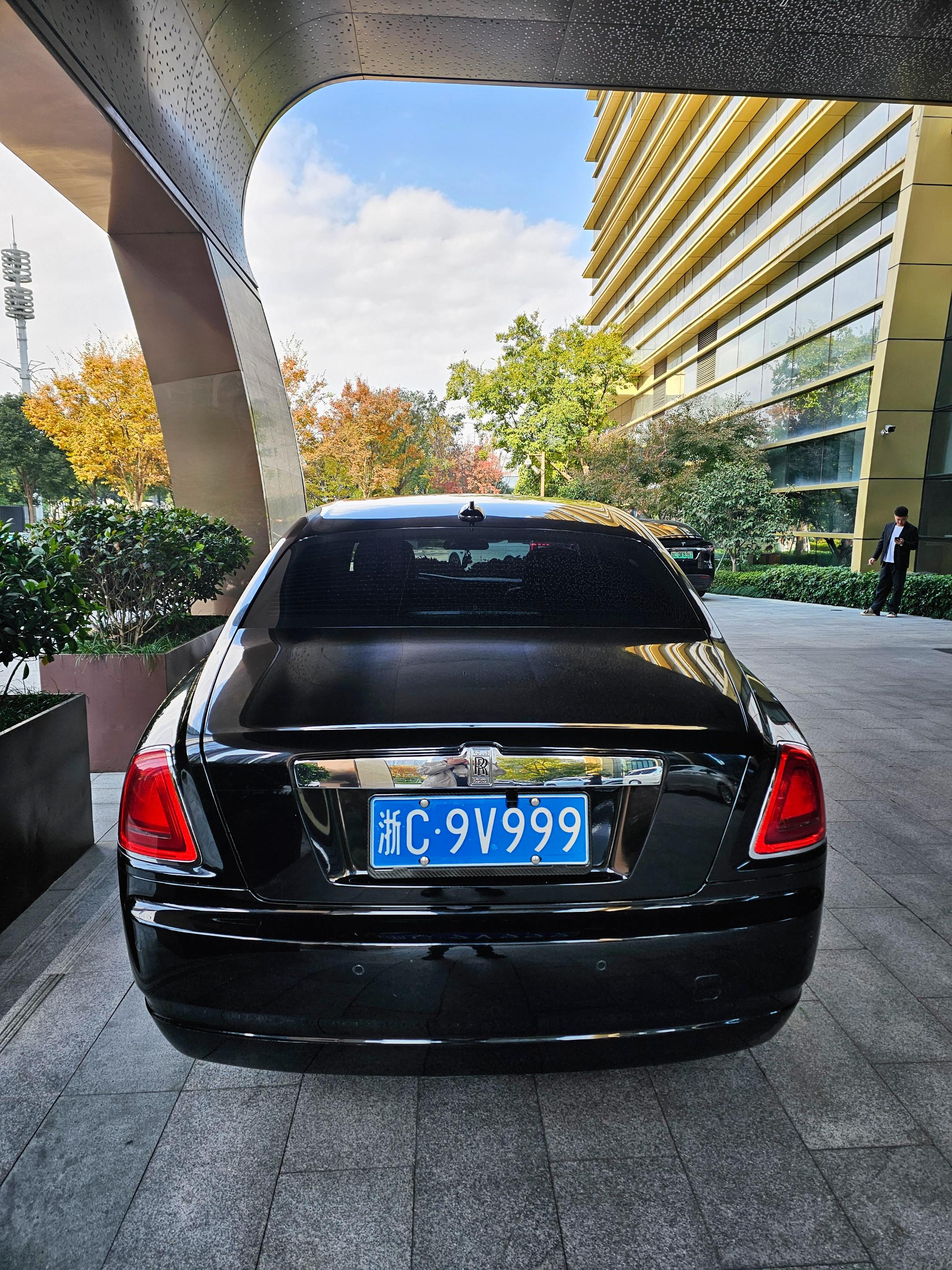 在温州喜来登酒店门口偶遇婚车劳斯莱斯古思特,浙C9999车牌,气场强大霸气十足!