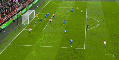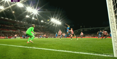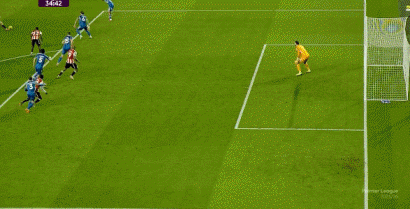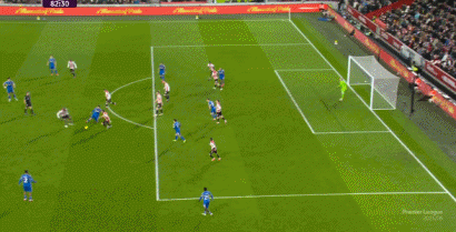 第74分钟,利兹联禁区里一次双人抽射被门将飞身扑出。↓