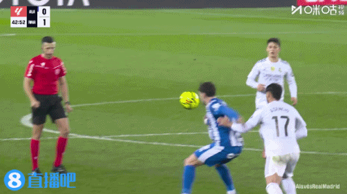 直播吧12月15日讯西甲第16轮,皇马客战阿拉维斯。43分钟,阿森西奥身后踢到博耶裆部,裁判吹罚犯规未出牌。