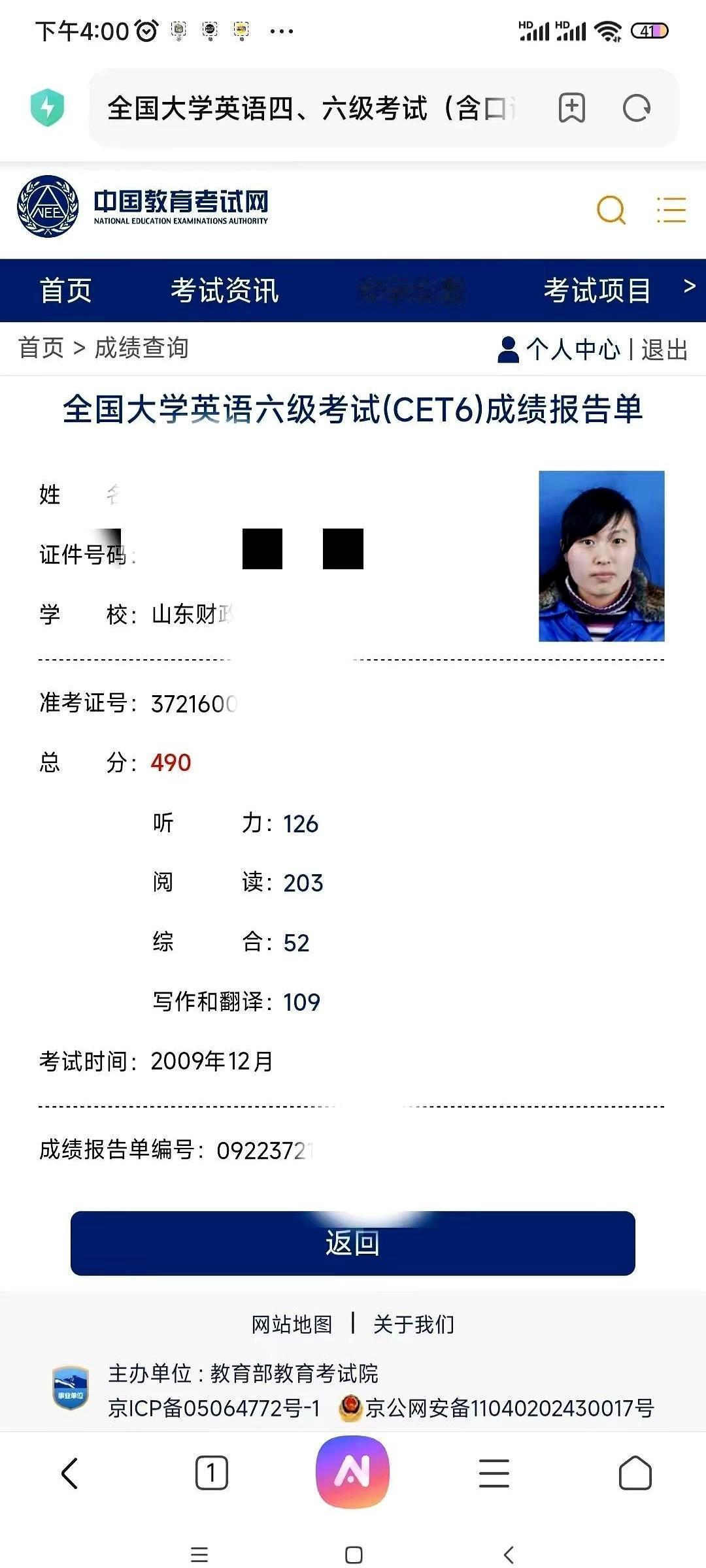 我天,刚刚手贱查了一下,16年前的四六级成绩居然还能查到! 2009年。 看到成