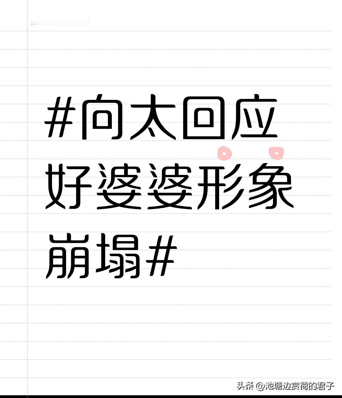 向太回应好婆婆形象崩塌 向太的好婆婆形象最近崩塌得挺厉害,网上质疑声一片。这事起因是郭碧婷爸爸心疼女儿,说她婚后自己赚钱,养婆家、补贴娘家、养孩子请保姆都得自己掏钱。这话传到网上,网友过度解读,觉得郭碧婷在向家不受待见,向太也成了抠门、伪豪门的代表。 12月13日向太发视频回应,委屈得不行,说自己好婆婆形象差点没了,像被枪毙一样。她没找郭碧婷父女理论,怕儿媳难做。还解释郭碧婷花自己钱补贴娘家,自己婚后给她买了好几块地登记在她名下,很大方。看来有时候长辈家常话被网络一发酵,就容易变味啊。