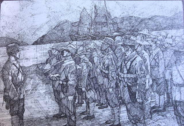 海防大队一中队在古窑浦海口晒场集结出发(绘画潘明位)