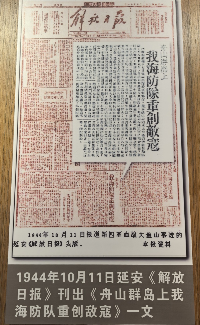 至此,我对大鱼山战斗的历史有了全面的了解。当时,战斗的消息通过电讯传到了延安,1944年10月11日《解放日报》头版刊登新华社电讯,题为《舟山群岛上我海防队重创敌寇》;《新浙东报》更早,在1944年9月15日头版头条报道:《敌海陆空军联合进攻下我海防队血战大鱼岛毙伤敌伪军六十余名我二十余勇士壮烈殉国》;浙东游击纵队办的《战斗报》社,还编印了《血战大鱼山》的连环画……