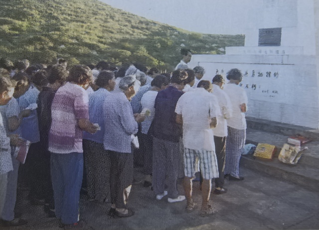 每年农历七月七,大鱼山的人民都会到纪念碑前为牺牲的烈士祭祀悼念,80年来从未间断(岱山县史志研究室供图)