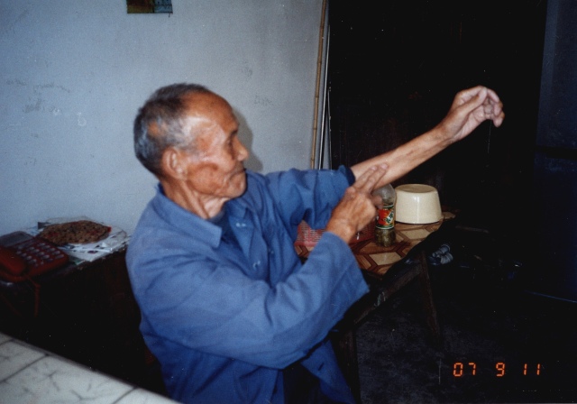 李金根的家在上海南汇区牌楼村。2007年9月11日,我和时年86岁的老英雄终于见上了。他身材瘦小,面色黝黑,就是老农民的模样,但身体硬朗,穿着干净的蓝色卡其布衫,普通话夹杂着南汇方言。
