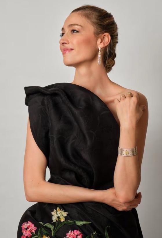 次媳碧翠丝为多年来的Dior宣传大使,今年穿了热乎着的春夏高定礼服,全套珠宝也来自Dior高级珠宝