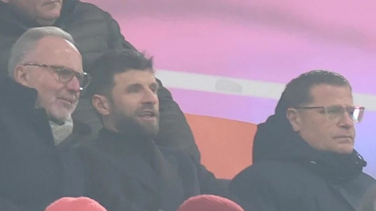 比赛期间,穆勒正坐在VIP看台上,身旁是拜仁体育总监埃贝尔和监事会成员鲁梅尼格,而穆勒所坐的这个位置,通常是赫内斯的专属席位。