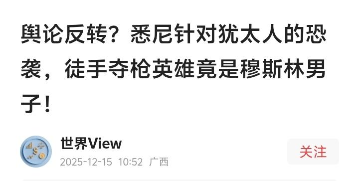 悉尼血色黄昏:枪手挥手清场精准猎杀,水果店主空手夺枪引爆全球泪点与争议! 那个周日的黄昏,悉尼邦迪海滩的夕阳本该洒在犹太社区光明节庆典的笑脸上。然而,几声刺耳的枪响撕裂了宁静,一场针对性的屠杀让沙滩染上血色。更令人脊背发凉的是,其中一名枪手在桥上竟冷静挥手,驱赶靠近的围观者,仿佛在清理舞台,只为接下来的杀戮大戏。装弹、瞄准、射击,动作干净利落得让专家直呼:“这绝非普通人,绝对受过军事训练!” 当人群在尖叫中四散,死亡数字不断攀升,一个身穿白T恤的身影却逆流而上。43岁的水果店老板艾哈迈德,那一刻忘记了自己只是两个孩子的父亲,只是一个寻常路过的小店主。他从车后闪出,如同猎豹扑食,从背后死死锁住枪手,奋力夺下那支还在发烫的步枪。没有武器经验,有的只是一腔孤勇,他夺过的不仅是一把枪,更是无数条鲜活的生命线。 可命运弄人,这位瞬间的英雄,在夺枪后举手示意自己并非歹徒时,却遭子弹击中,倒在血泊中。现场照片里,他捂着伤口,眼神里没有后悔,只有平静。他的表亲后来说:“他只是路过,完全出于本能。” 这种本能,恰恰映照出人性最耀眼的光辉——在绝对黑暗前,总有人选择点燃自己,照亮他人。 枪手的冷血与艾哈迈德的炽热,在这一刻形成残酷对比。一边是精心策划、针对特定族裔的屠杀,挥手驱赶的细节暴露其绝非临时起意;另一边是毫无预谋、挺身而出的凡人神性,空手夺枪的瞬间震撼全球。网友炸开了锅:“从挥手就能看出,这不是无差别袭击,是有目标的仇恨犯罪!”“到底是什么样的压迫,让人宁死也要反抗?” 每一个问号背后,都是对深层矛盾的叩问。 这场悲剧撕裂了澳大利亚的平静表象,也撕裂了国际舆论场。当美国犹太裔亿万富翁豪捐近十万美元给艾哈迈德,当多国政要齐声称赞他是“真正的英雄”,另一种声音却在悄然蔓延:“为什么挺身而出的,偏偏是一名穆斯林?” 复杂的身份标签,让这场枪击案不再是非黑即白的叙事,而是折射出种族、宗教、历史恩怨交织的现代困境。 我们不禁要问,当仇恨的种子被埋下,谁在浇水施肥?当暴力成为表达诉求的途径,社会又缺失了怎样的对话桥梁?艾哈迈德的勇敢像一面镜子,照出了普通人的神性,也照出了系统性矛盾的阴影。他的故事让我们泪目,但泪目之后更需深思:如何才能不让下一个普通人,被迫成为乱世中的英雄? 邦迪海滩的潮水会冲淡血迹,但冲不淡这场悲剧留给世界的震撼。它告诉我们,恐怖或许能制造头条,但真正能穿透历史、温暖人心的,永远是那束在至暗时刻迸发的人性之光。愿逝者安息,愿勇者无恙,更愿这样的光芒,能照亮更多通往理解与和平的路。 (来源:综合澳大利亚新闻网、央视新闻、红星新闻、社交媒体及公开报道) 悉尼枪击事件 人性光辉