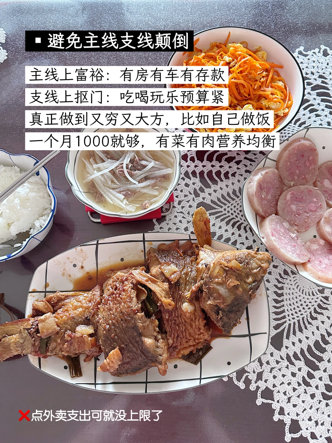 主线上富裕:有房有车有存款,支线上抠门:吃喝玩乐预算紧。真正做到又穷又大方,比如自己做饭。一个月1000就够,有菜有肉营养均衡。