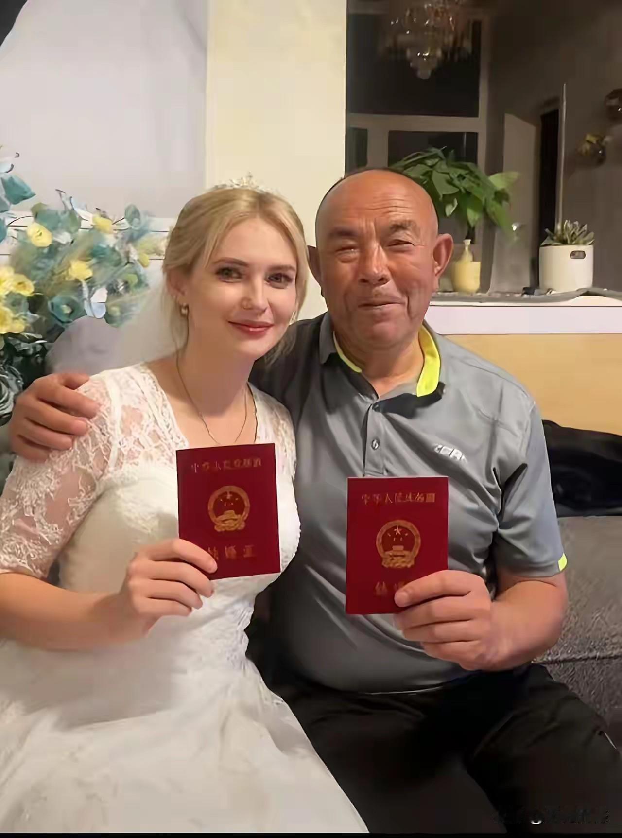 两个人年龄相差很悬殊,但是最终走到了一起,而且还是相隔千山万水,文化背景不一样,受教育程度不一样,语言还不一样,生活习俗也不一样,诸多如此不一样的人,之所以还能够走到一起,足以说明缘分的重要,足以说明这个老大哥的优秀,否则的话,不可能出现这样的画面!