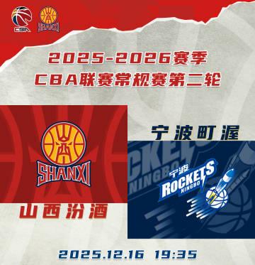 配文:明日赛事预告,2025年12月16日19:35,2025-2026赛季CBA联赛第二轮+潜力赛,山西汾酒(主)vs宁波町渥(客)