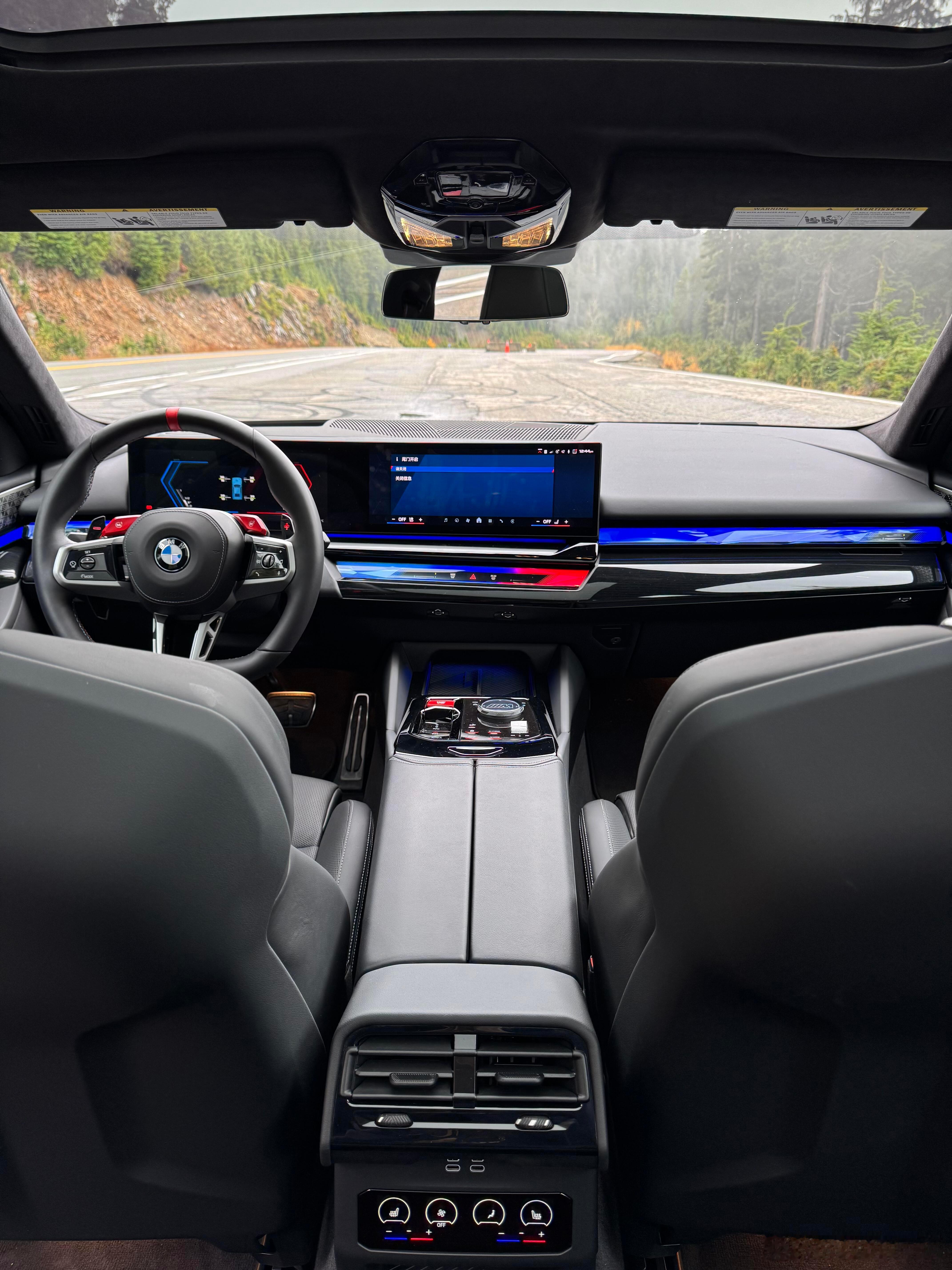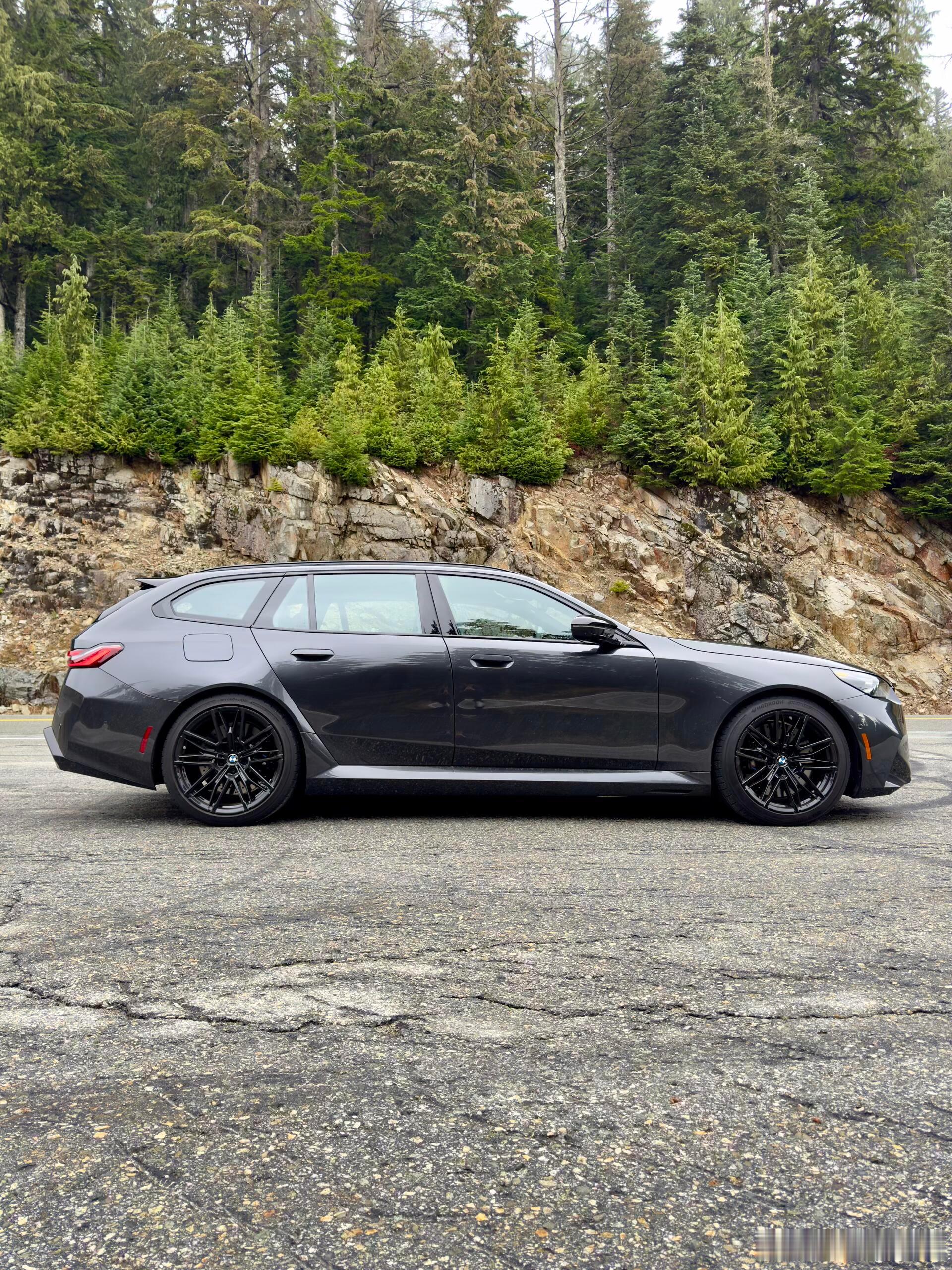 宝马M5 Touring1️⃣外观方面,丰盈的后宽体搭配夸张的后扩散器设计,视觉效果非常饱满。前脸硕大的开放式气坝设计侵略性十足。2️⃣内饰方面,M专属方向盘非常粗壮,时间久了有种手上握着杯咖啡开车的错觉。座椅包裹性很棒,可调范围很大,设计来说全新5系不错的,但用料就差点意思了。3️⃣动态表现方面,以2.5吨体量的车来说,全新宝马M5操控非常棒,在四轮转向的辅助下,高速弯比想象中快很多。然而来到低速弯和相对颠簸的路段,车身姿态就略显狼狈了,先推后甩的动作也多了起来。