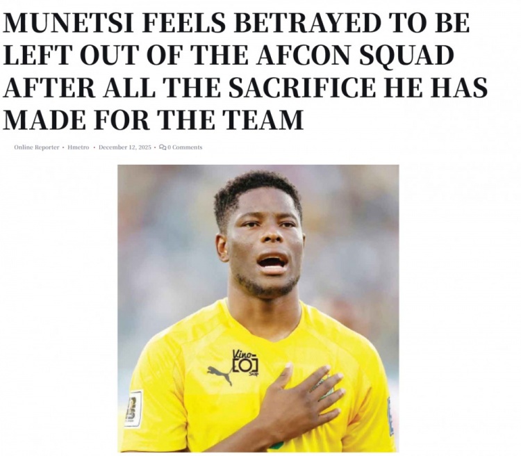 尽管有报道称穆涅西有伤,但球员在幕后一直和津巴布韦主帅马里尼卡保持联系,希望能说服对方带自己参加非洲杯。在沟通中,穆涅西表示,津巴布韦足协应该安排国家队医生对他的伤情进行评估才能知道如何做决定。