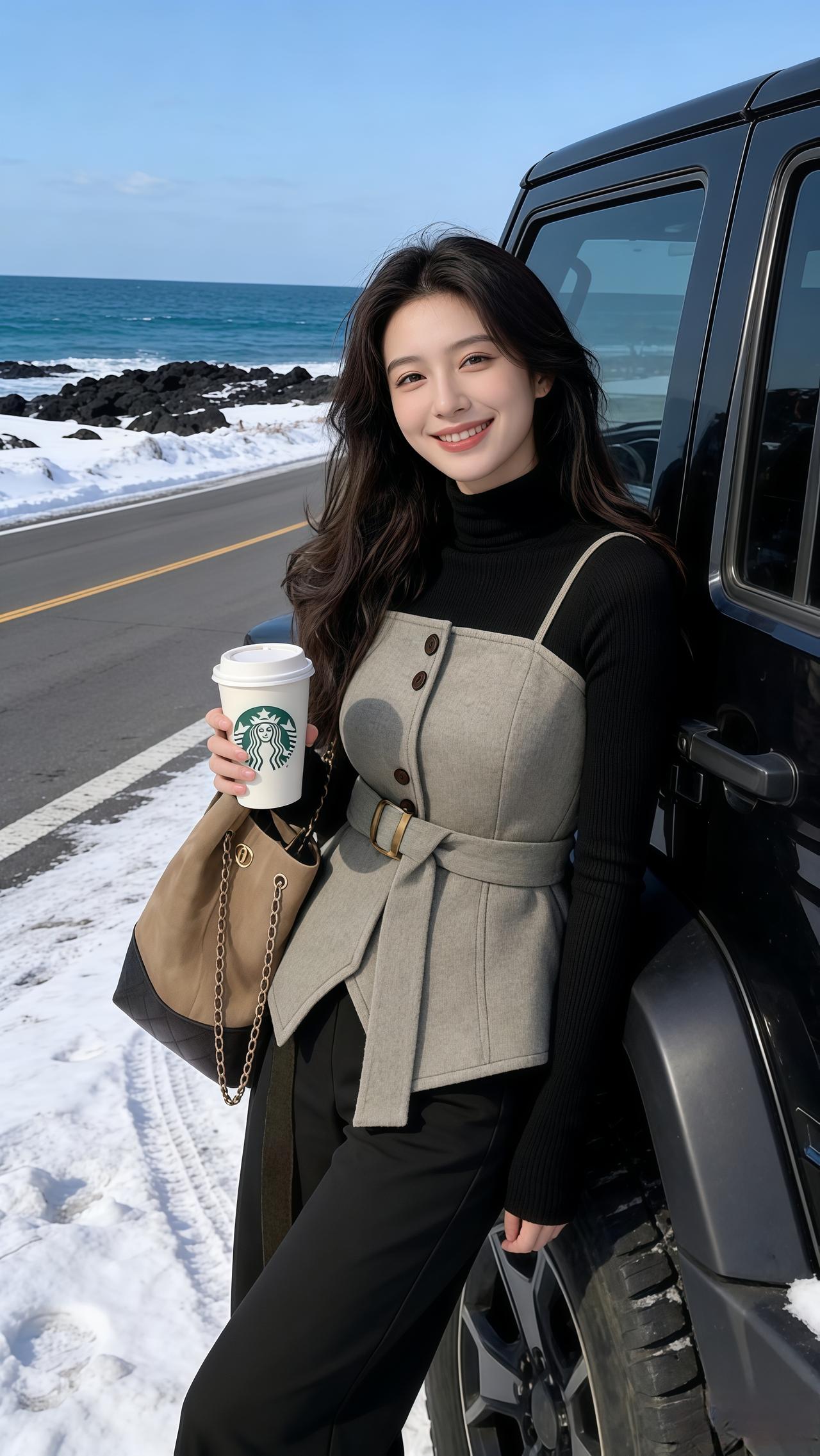 穿搭指南:白色羽绒服+棕色裙摆+紫色手袋,完美搭配!