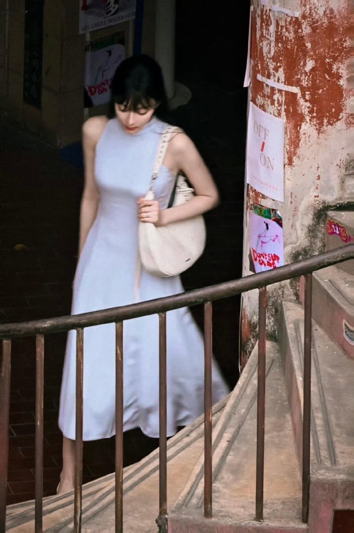 迪丽热巴,轻盈白裙,温柔甜美。迪丽热巴