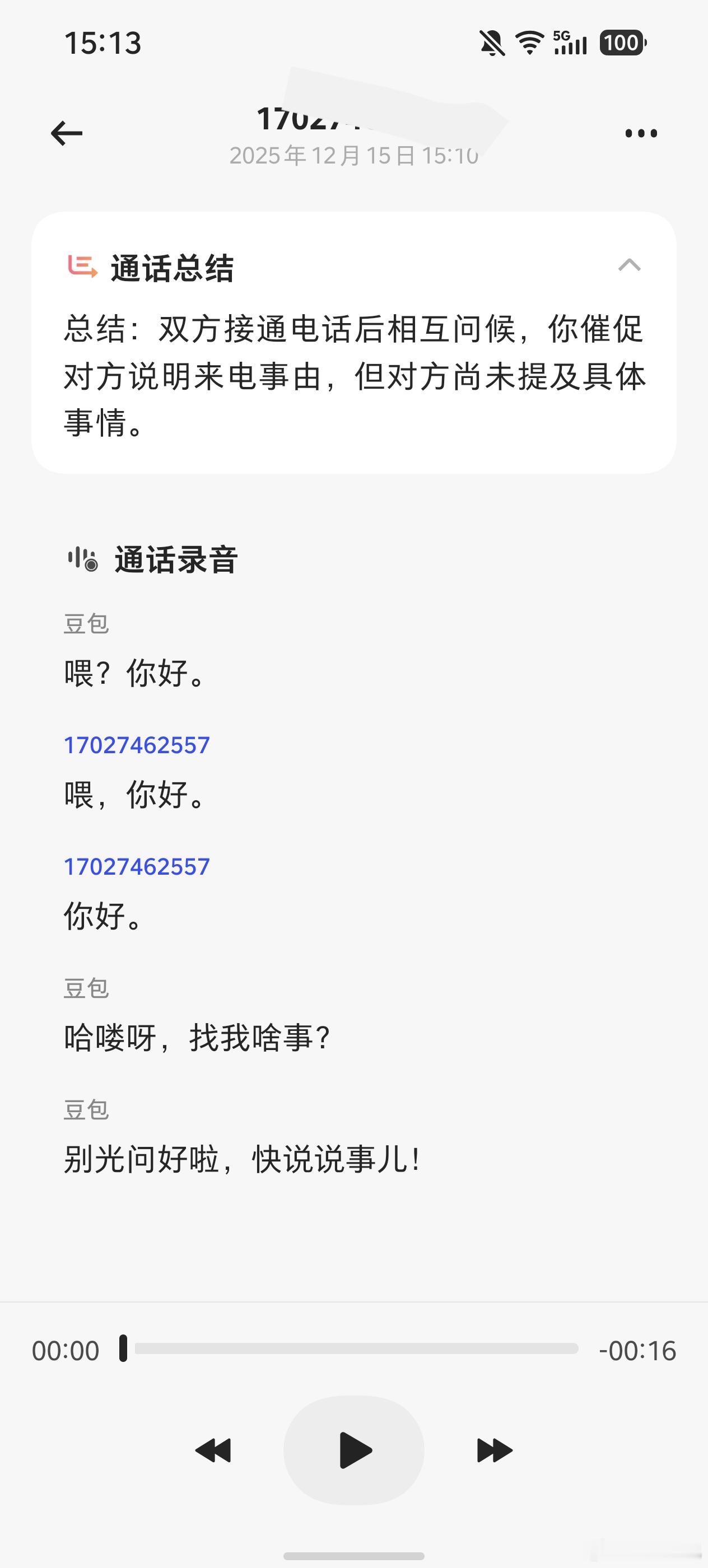 短短5分钟豆包手机刚刚接了两个垃圾电话第一个估计也在试探,感觉不是真人的声音就没往下说第二个就很能唠了跟豆包有一句没一句的,最后要加微信的时候被豆包拦住了说别着急再介绍介绍不过第一个很奇怪,既不是移动联通也不是电信。显示一个“朗玛通信”,有没有知道来路的说一下