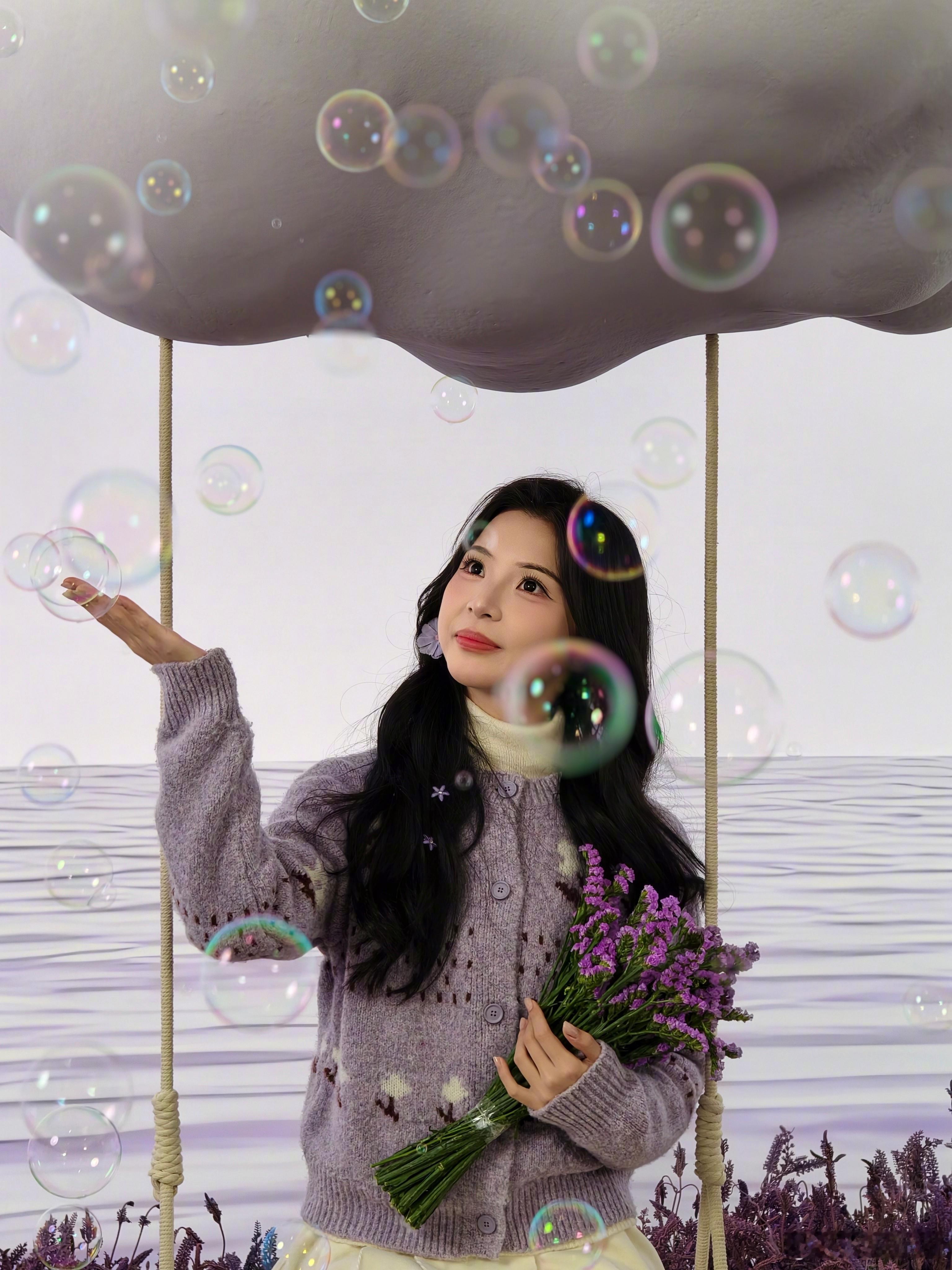 田曦薇简直是从仙境走来的少女!圆润的幼态脸型衬得五官精致灵动,圆溜溜的杏眼藏着星