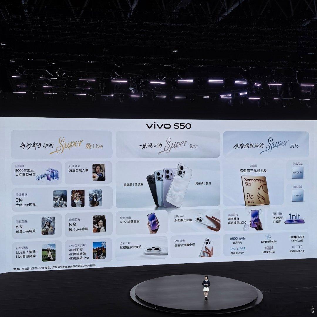 vivo S50这次把“全能”和“懂用户”捏得很到位!设计上没玩虚的,四款配色清新时尚,细节上更是带着细腻肌理的触感。最惊喜的是Super Live能力,同档独有的大底潜望长焦太顶了,拍远处的建筑细节不糊,拍人像时还能自然虚化背景,不会把边缘切得生硬;更不用提大师Live运镜和特效,以前拍vlog总怕镜头晃、没氛围感,现在开个运镜模式,走路拍也稳得像架了云台,滤镜更是不用后期调,随手剪剪就是有故事感的片段。至于满配体验,完全是戳中痛点的设计:6500mAh电池拒绝续航焦虑,超声指纹按一下就解锁,比传统指纹快半拍,IP69+IP68防尘抗水更是安心,雨天不小心溅到水、洗手时碰了水,擦一擦照样用。它没喊什么旗舰标杆的口号,却把用户在意的颜值、拍照、续航、耐用度,都做到了日常能用得舒服的程度——这才是真正的好用