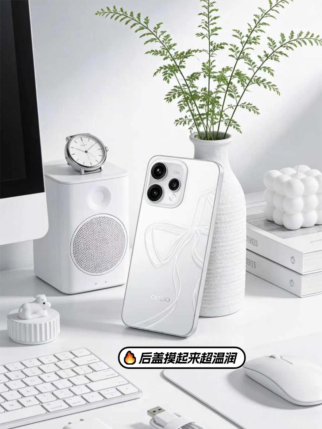 白色蝴蝶结手机,审美长在我的心窝里了~ 最近在折腾桌搭,把新手机往桌上一放 ✨你们觉得这个颜值如何 我拿到的Reno15c🎀, 在灯下会有一点立体光影变化,不是那种浮夸的亮, 而是越看越耐看,质感比我预期高不少。👍 放在桌面不管是配我的白色键盘,还是旁边的小绿植, 都莫名和谐,越看越喜欢~ 6.59英寸大小刚好卡在Reno15和Pro中间,应该算是中屏吧, 单手拿在手里很舒服,不会像大屏那样坠手,刷视频、打字都刚好, 😍喜欢这种不宽不窄的机身比例~ 而且电池也比Reno15大一些(6500mAh) 日常通勤刷社交软件、拍拍照,晚上回家的时候不怕手机没电 不用天天揣着充电宝,颜值和实用性都兼顾到了 而且出圈实况拼图、4K实况一拍多出等统统都支持 系统也是ColorOS16,支持AI记账、AI取餐码等功能~ 配置大体上和Reno15差不多,而且便宜100性价比更高 大家觉得好看不?嘿嘿 OPPOReno15c OPPO新机 手机设计 桌搭 高颜值手机 中屏手机 桌搭分享