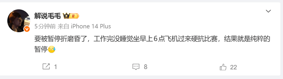 解说毛毛锐评:坐早上飞机来硬抗比赛,结果就是纯粹的暂停