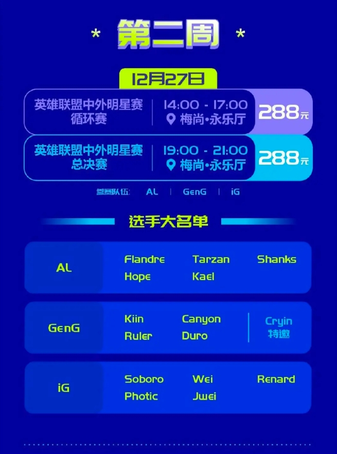 直播吧12月15日讯濮院电竞节英雄联盟中外明星赛,GEN将特邀Cryin担任中单参与比赛,另外两支参赛队伍为AL、iG。