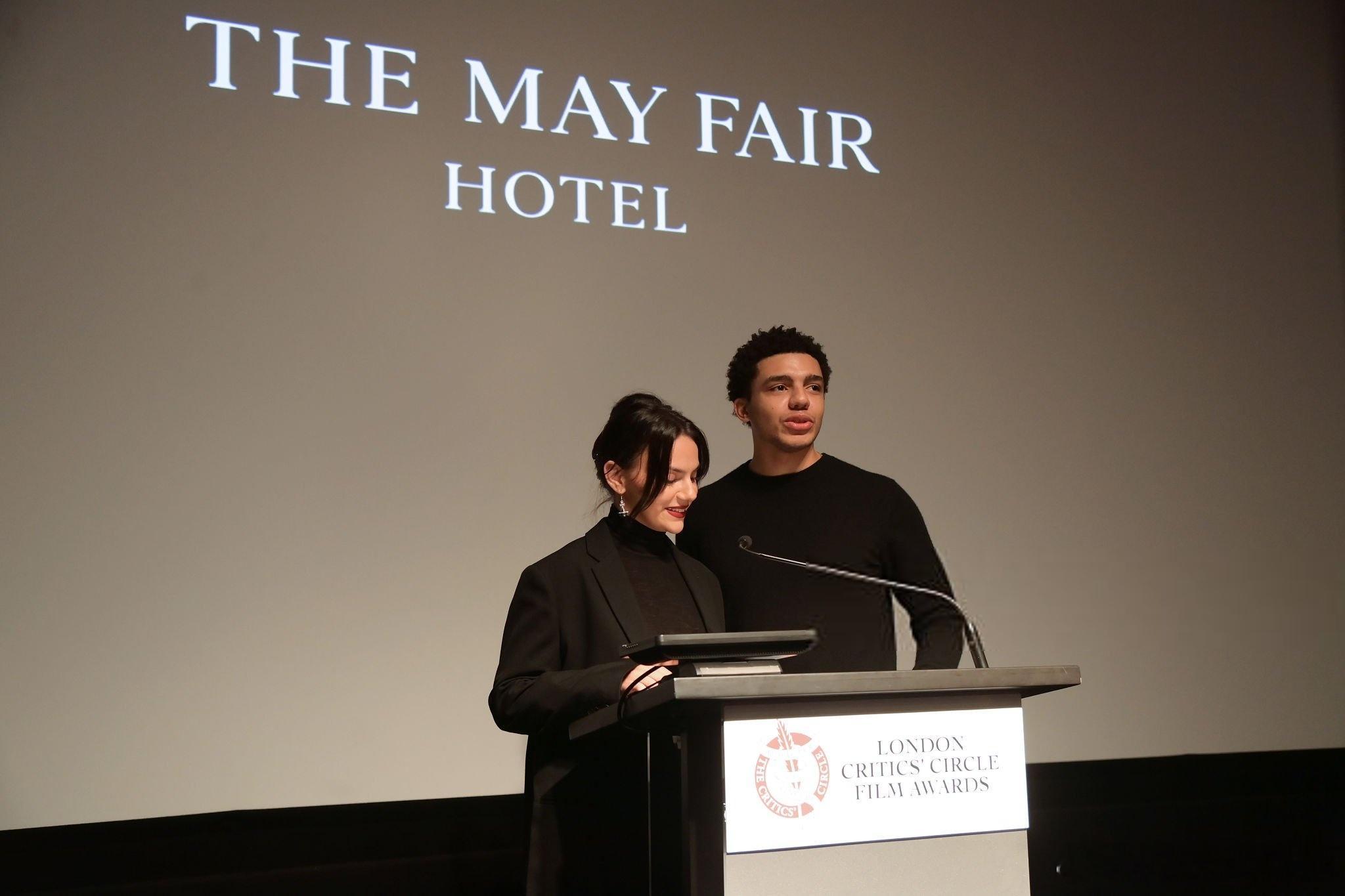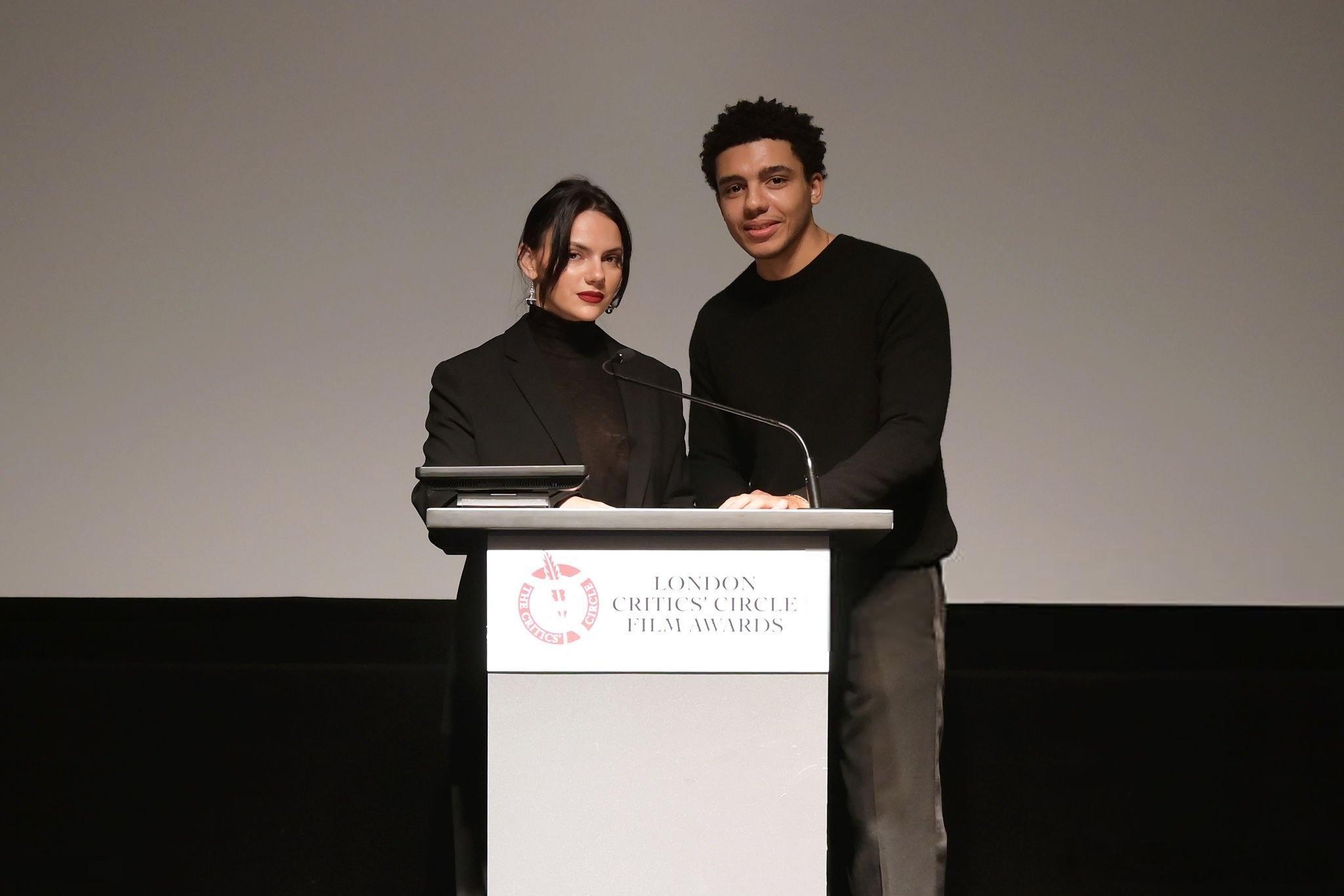 dafne keen达芙妮基恩在伦敦出席伦敦影评人协会奖的提名公布会,和Jay Lycurgo一起宣读各项电影奖的提名名单