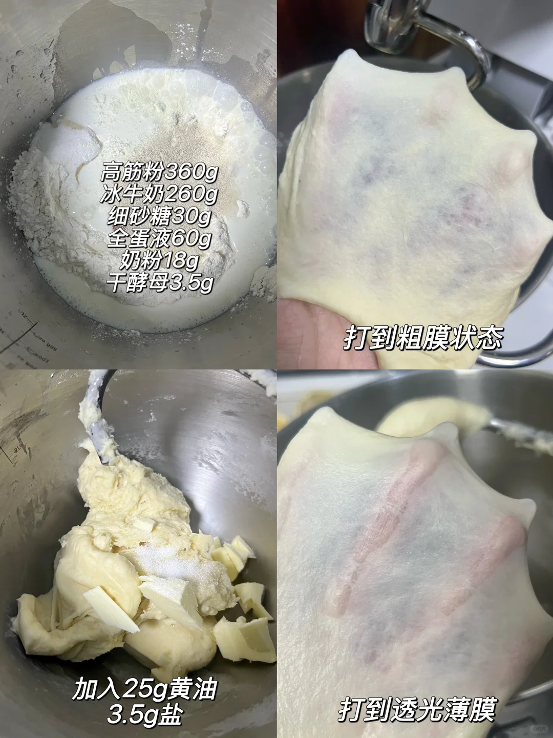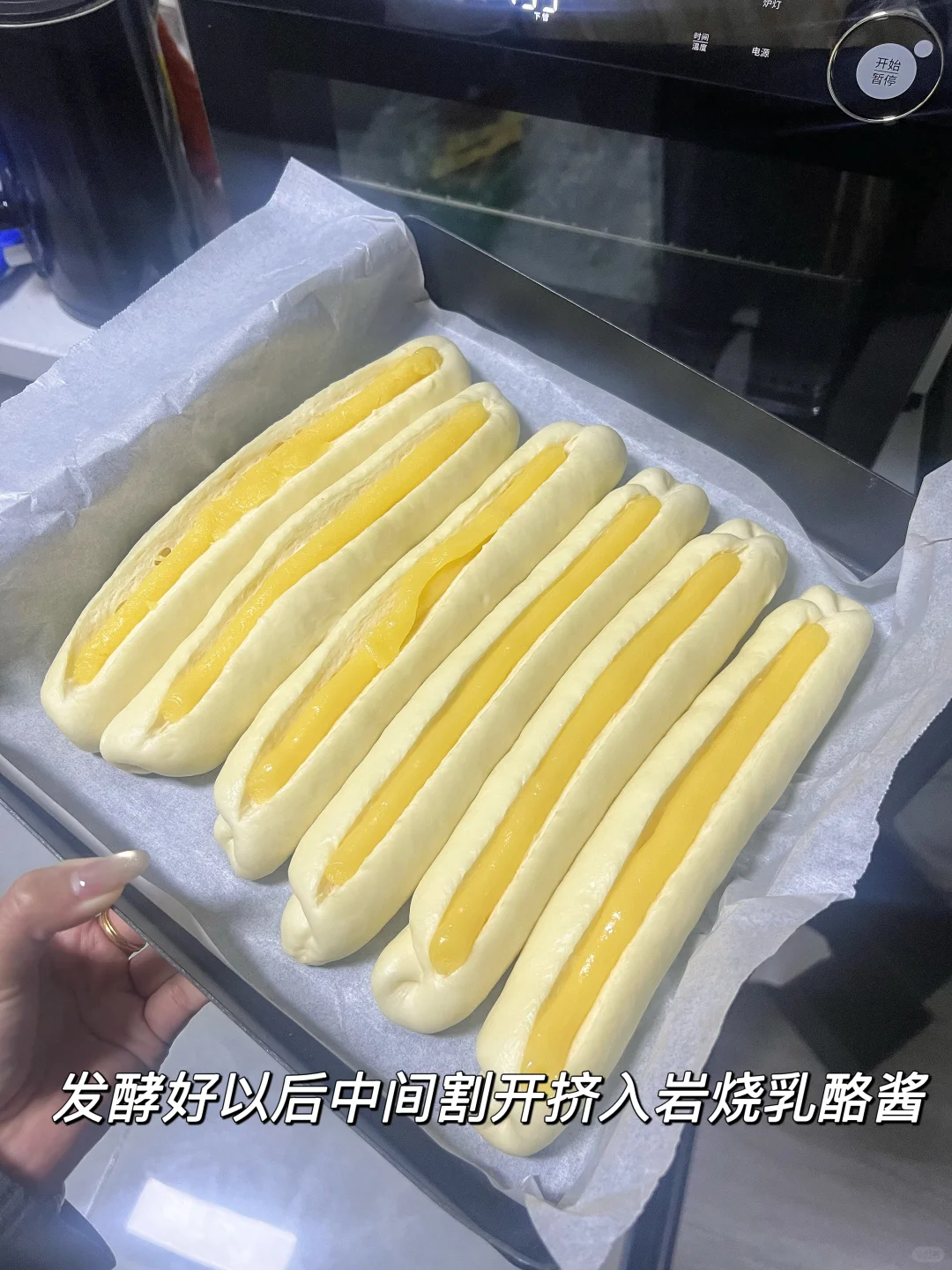 用28方盘做了岩烧乳酪排包 太太太好吃了,甜咸面包党都很爱! 我这个配方28盘没有完全发满,想要再满一些可以食材×1.2试一下 —— ✅食材 面包体:高筋粉360g、冰牛奶260g、全蛋液60g、奶粉18g、细砂糖30g、干酵母3.5g、黄油25g、盐3.5g 岩烧乳酪酱:淡奶油68g、芝士片3-4片、细砂糖24g、黄油18g、盐1.2g