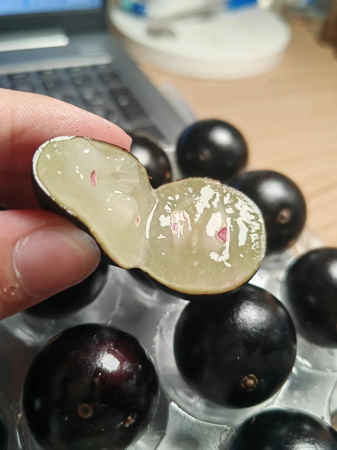 网上买了一点,40粒60元,顺丰空运到家,还是比较新鲜的,味道和葡萄差不多,多了一点热带风味,喜欢吃葡萄的应该比较喜欢[偷笑R]