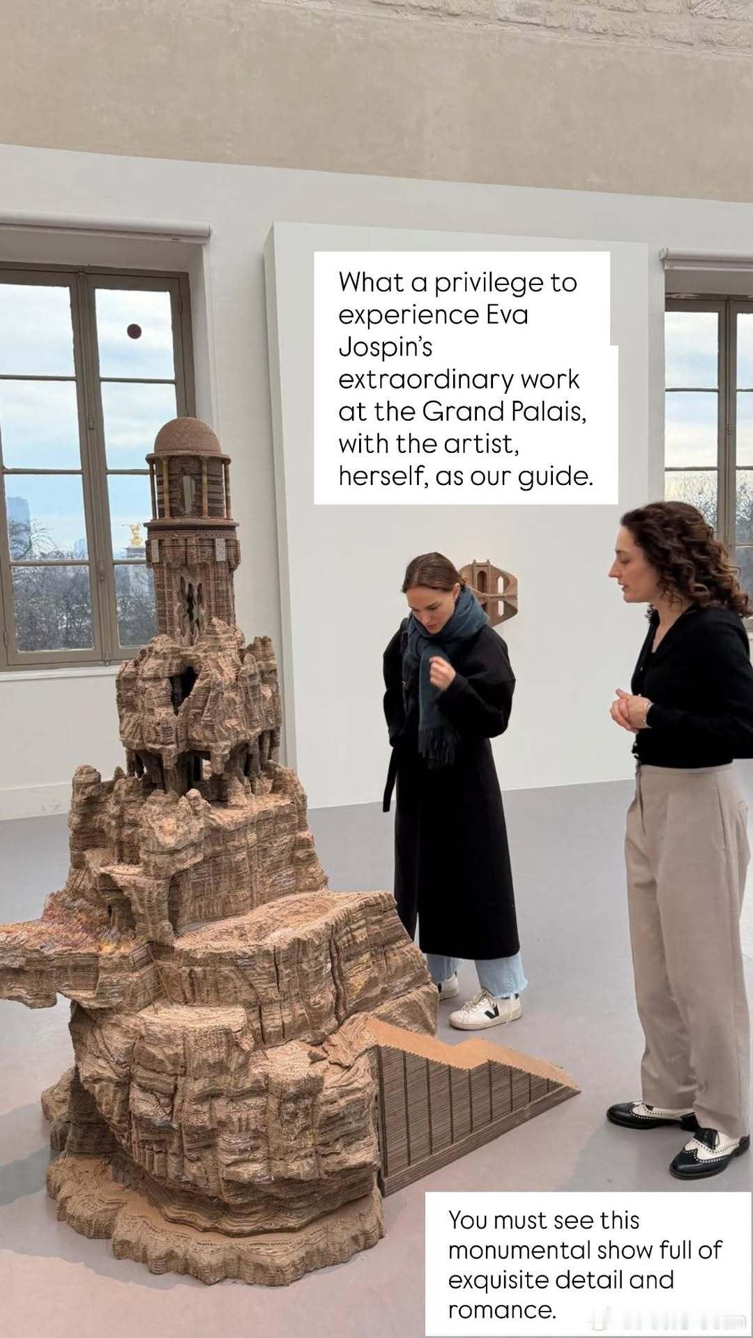 natalie portman娜塔莉波特曼分享自己在巴黎大皇宫参观艺术家Eva Jospin的作品,并获得VIP待遇由她本人亲自当向导