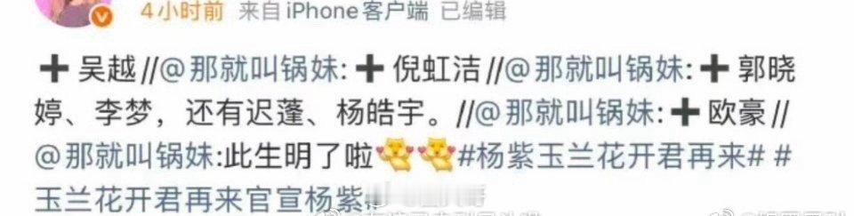 杨紫玉兰花开君再来两版阵容杨紫新剧《玉兰花开君再来》又有新消息了啊,没想到现在居然传出两版演员阵容,不过剧组请来的实力派,哪一版和杨紫对戏,都很是带感啊,不过话说回来,这部剧的男主是朱亚文还是欧豪,或者是欧豪啊~杨紫新剧两版演员阵容