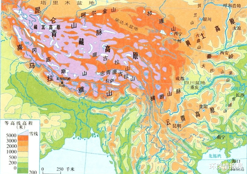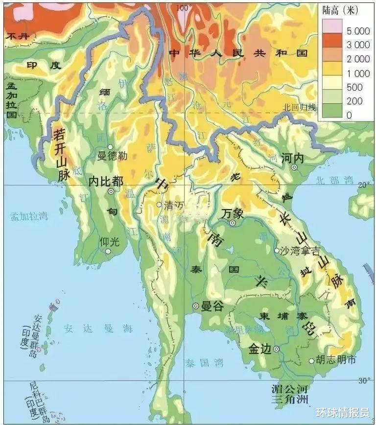 ▲中南半岛地形图