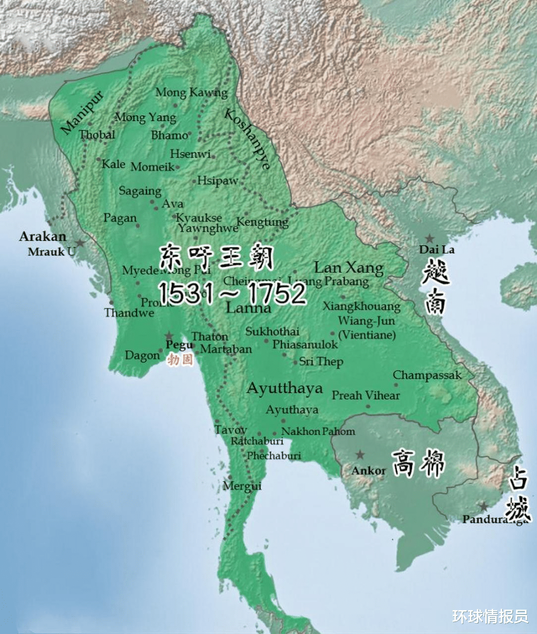 ▲缅甸东吁王朝极盛期版图