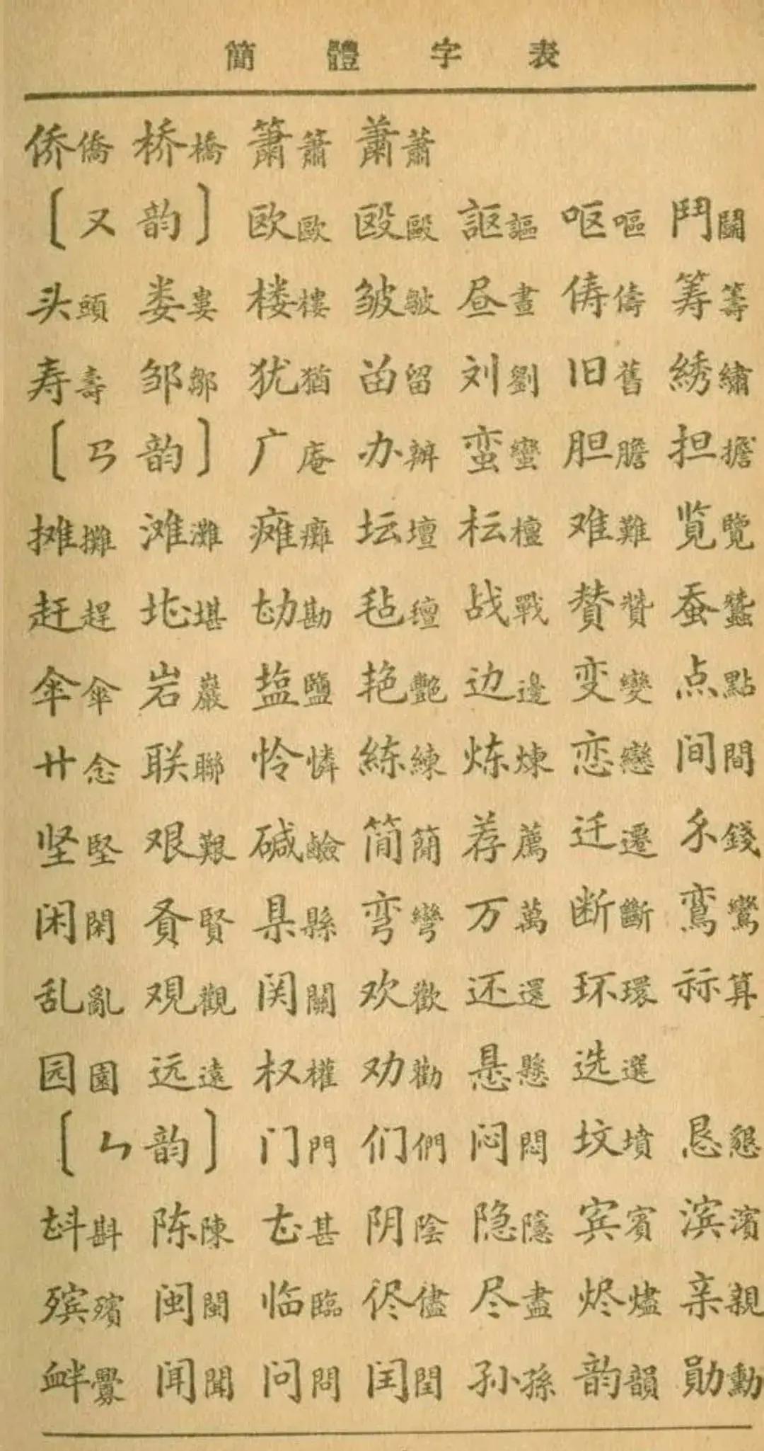汉字简化,不仅仅是为了扫盲! 共和国建立前,中国教育特别落后,城市文盲率高达80%左右,农村95%以上。 这种情况的原因有二: 1、旧中国连年动荡、贫困落后,多数平民百姓都无受教育的机会; 2、汉字本身繁琐复杂、书写难、辨认难、不统一。简化字的诞生,本身就是对这个问题的印证。 一、简化汉字是漫长的过程 简化字并非新事物,古已有之。自隶书、楷书定型后,民间为求便捷便自发简写,在契约、书信、账本、药方中,常以“万”“体”“钱”这类“俗字”“简体字”替代“萬”“體”“錢”,虽未形成统一标准,却为后世系统简化积累了宝贵经验。 50年代推行的简化字,始见于共和国后的仅0.26%,绝大多数在古代就有的,经过规范、整理、筛选后确定。有人说简化汉字破坏传统文化继承,殊不知简体字本身就是传统文化的组成部分。 近代以来,简体字成为中国普及教育、复兴民族的首选: 陆费逵是先驱者 ,1909年,他在《教育杂志》创刊号发表《普通教育应当采用俗体字》,这是历史上首次公开提倡使用简体字。 1922年,钱玄同等学者率先提出系统简化方案,民间纷纷响应。 1935年国民政府发布《第一批简体字表》,虽因多种因素废止,却开启汉字简化的官方探索。 共和国时期,汉字简化进入规范化、规模化、系统化、官方化: 1956年,国务院正式发布《汉字简化方案》确立“约定俗成、稳步推进”原则,对汉字进行全面梳理;1964年《简化字总表》公布,收录2235个简体字,形成完整的简化汉字体系; 1986年的修订版沿用至今,未再有大调整(以后相当长的时期内应该都不会再调整)。 二、只有对比共和国之前的汉字乱象,才能理解统一和简化汉字的意义 列举10个常用繁简字对比: 國→国(繁11画/简8画):简化后仍有“国家如宝玉”的表意巧思。 學→学(繁16画/简8画):简化后不影响辨识度,书写效率高。 難→难(繁19画/简10画):简体以“又”替代繁体右侧复杂部件,笔画锐减且字形规整,表意清晰。 馬→马(繁10画/简3画):简体浓缩马的轮廓。 體→体(繁22画/简7画):简化后表意与实用性兼具。 聽→听(繁25画/简4画):简化后书写和辨识都更轻松。 書→书(繁10画/简4画):简化后书写负担显著降低。 龍→龙(繁16画/简5画):简化后依旧辨识度拉满。 醫→医(繁19画/简7画):简化未丢失医疗表意。 飛→飞(繁19画/简3画):简体形似飞鸟展翅,表意直观。 很多繁体字笔画多又乱,看都看不清楚,记全笔画更难,写的时候头都大了。不少人读书多年,写繁体字还是常写不全、写不对。 不但有繁简之分,还有让人抓狂的异体字。它“一字多形”,虽表意相同,但形态各异,让人晕头转向。举例说明: 和:异体字有龢、咊。最终统一规范为“和”。 奔:异体字有犇、逩。现统一规范为“奔”。 雕:异体字有彫、鵰、凋、琱。最终统一为“雕”。 杯:异体字有桮、盃。现统一规范为“杯”。 并:异体字有並、併、竝。最终统一为规范字“并”。 欢:异体字有懽、驩,统一为“欢”。 汇:异体字有滙、彙,现在统一用“汇”。 迹:异体字有跡、蹟。最终规范为“迹”。 回:异体字有囘、囬、𡇌。最终统一规范为“回”。 窗:异体字有牎、牕、窓、窻。现统一为“窗”。 (1955年发布的《第一批异体字整理表》,最初一次性就淘汰了1055个异体字,可见数量多么惊人) 不仅如此,民间还有“一字多简”现象,也让人无语: 親:有“亲”和“䞍”两种简体。 亂:有“乱”和“乩”两种简体。 愛:有“爱”和“爰”两种简体。 劍:有“剑”和“刽”两种简体。 禮:有“礼”和“礻乙”两种简体。 汉字这种“繁简并存、一字多简、异体字杂乱”的乱象,造成了识字难、写字难、不方便、信息传播成本高、文盲多等问题。这表明,国家有必要统一汉字——规范简体字是最佳选择。绝不是像某些人说的那样——简化汉字是为了扫盲、为了扫盲而简化汉字。 三、简化字的当代价值和现状 如今,简化字已成为大陆地区通用文字,不仅大幅降低识字和书写门槛,助力全面扫盲,推动文化普及和信息高效传播。 在国际上,简化字是中文教育的主流标准,联合国等国际组织也采用简化字作为中文官方用字。 有人说,港澳台未推行简化字,早年也实现了繁荣富裕,想以此证明汉字不应该、不必要简化。此大谬矣! 港澳台面积小、人口少,早期教育资源集中,经济基础好,文字差异对当地发展的影响被其他因素冲淡;而大陆地域广阔、人口众多,文字统一对普及教育、社会进步、经济发展的价值更突出,很有必要。 至少在汉字的读、写、记基础学习环节,港澳台学生因繁体字笔画繁琐,明显比大陆孩子更耗时更耗力。再者,港澳台不少人(包括公众人物)日常也会自发地使用简体字。这足以证明,简体字的便捷性和实用性是无法否认的事实。