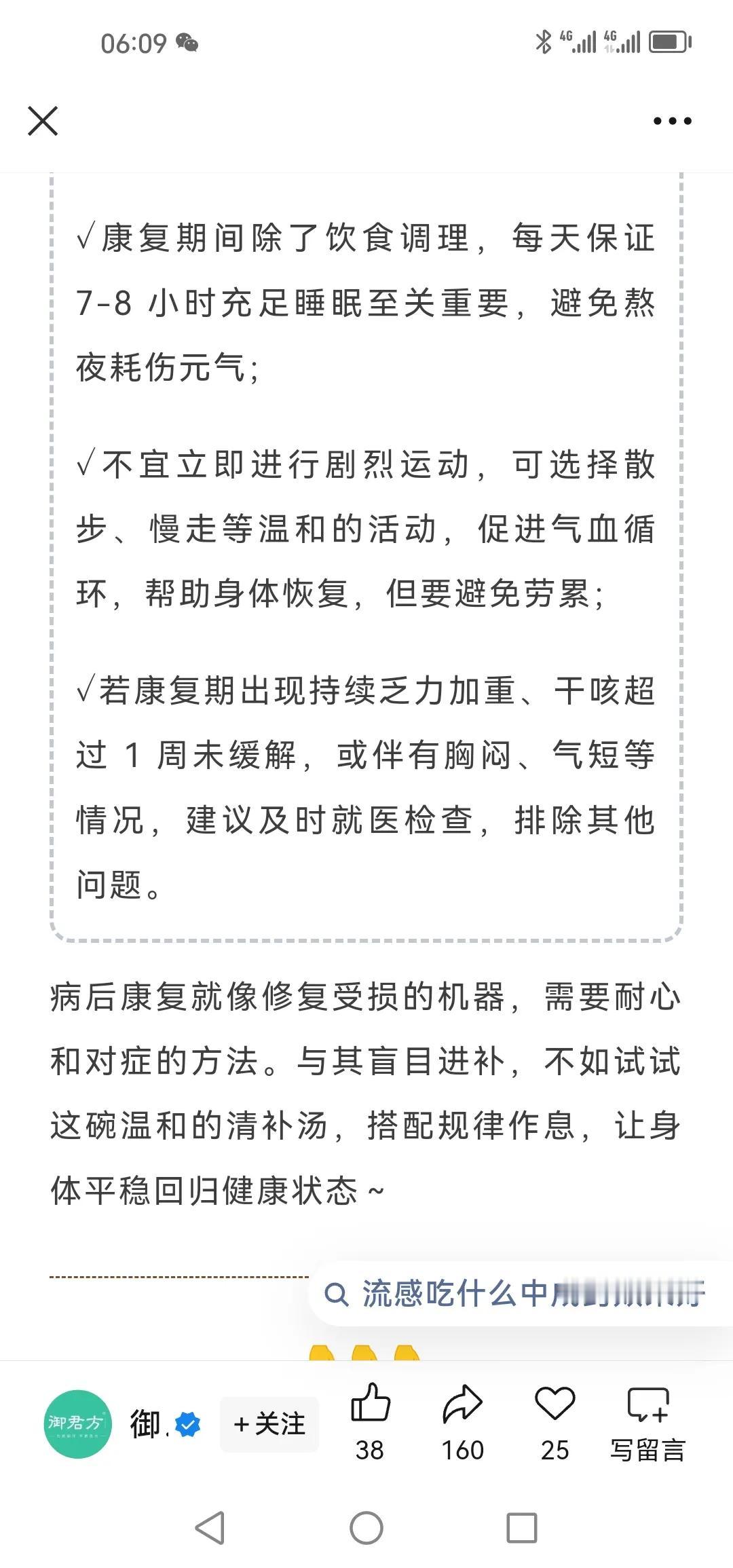流感好后身体虚? 千万不要盲目猛补 否则虚不受补还伤身 应 循序渐进“清补结合” 推荐这道清补养生汤调养 御君方,守护您的身体健康! (83伴学小助手小莹)秋冬流感 冬季流感 流感感冒药 流感汤 流感饮食要点 流感误区 流感饮食