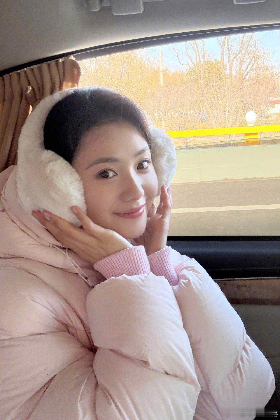 刘浩存冬日耳包氛围感刘浩存拍的北京初雪 戴着白色毛绒耳包,在风里笑出弯弯的眉眼,