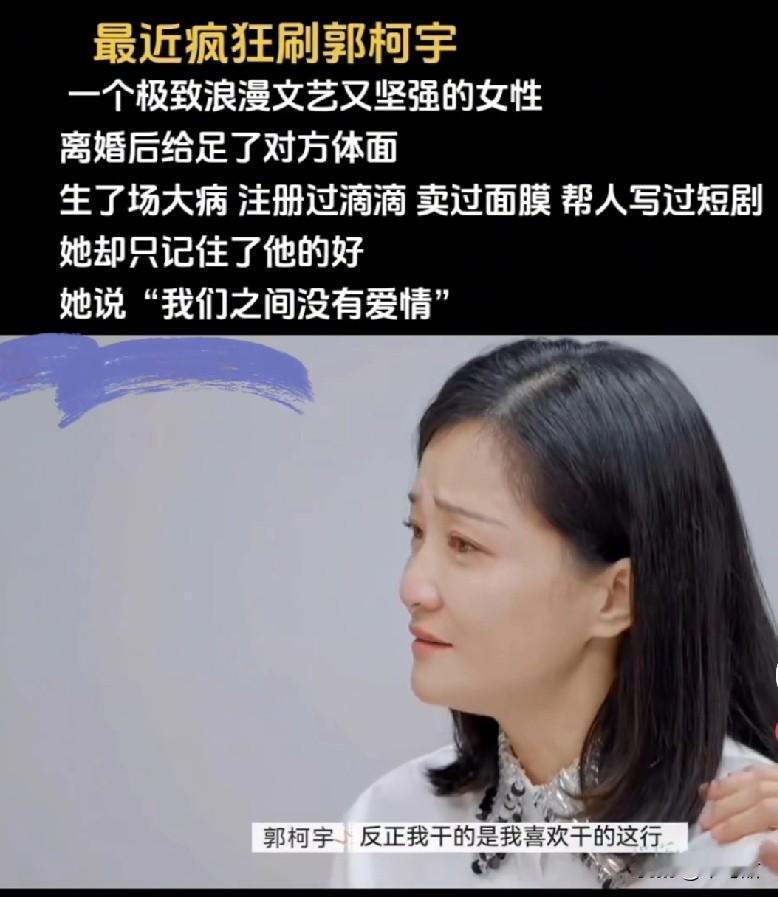 今天这份破碎感,是刷到一对物是人非的前恋人,郭柯宇和章贺。原来爱情最美的尽头居然是be。 我起初并不喜欢女方,太优柔寡断,明明心里有爱却拒绝表达,男方是不爱了,却又对她显得格外照顾和保护。两个人完全不恰的交集却在综艺的最后一集,女方下车等待,很多人跟我一起泪目了。 原来爱情里还有第三种,你爱过我,我爱过你,却从未产生交集。两个人都在追逐一份不合时机的爱情,直到离婚后才释怀当初的对与错,物是人非恰似柔情。 郭柯宇的温柔,有才情有演技,18岁就获得最年轻的百花奖荣誉。章贺的默默守护,可惜没能坚持住十年的付出。两个人明明这样的般配,还是没能走下去,原来章贺还是用了第三种方式去保护和成全郭柯宇的前程,这种爱,比单纯的“我爱你”更为珍惜和感动。 章贺离婚后有了一段新的感情,所以在那一句郭柯宇问他,“可曾有过复婚的一丝念头?”,他毫不犹豫地摇了头。可我分明从他的眼睛里,看到了藏不住的责任。那是刻进骨子里的牵挂,是即便分开,也想护她周全的执念。 那一刻,我突然特别感同身受郭柯宇的内心。原来有些东西,错过了就是错过了,过去了就真的再也回不去了。 这样的爱情,美得让人落泪,也累得让人心碎。它让我们看清,不是所有的深情都能换来相守,不是所有的相爱,都能抵过岁月漫长。或许,这就是爱情最真实的模样