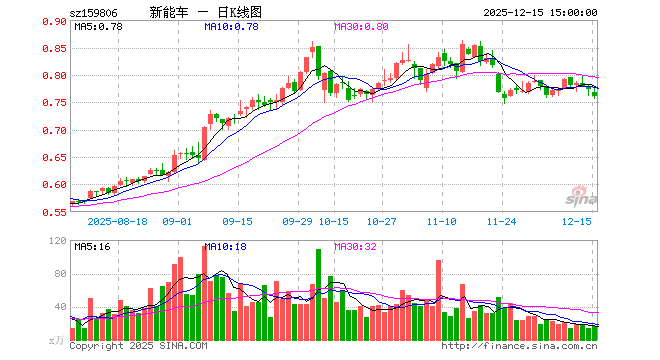 12月15日,新能源车ETF(159806)跌1.81%,成交额1215.03万元。当日份额增加500.00万份,最新份额为12.60亿份,近20个交易日份额减少1400.00万份。最新资产净值计算值为9.57亿元。