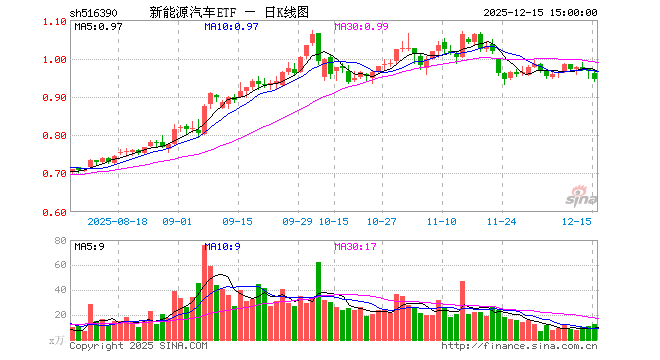 12月15日,新能源汽车ETF(516390)跌2.18%,成交额1178.70万元。当日份额增加300.00万份,最新份额为2.97亿份,近20个交易日份额减少750.00万份。最新资产净值计算值为2.80亿元。